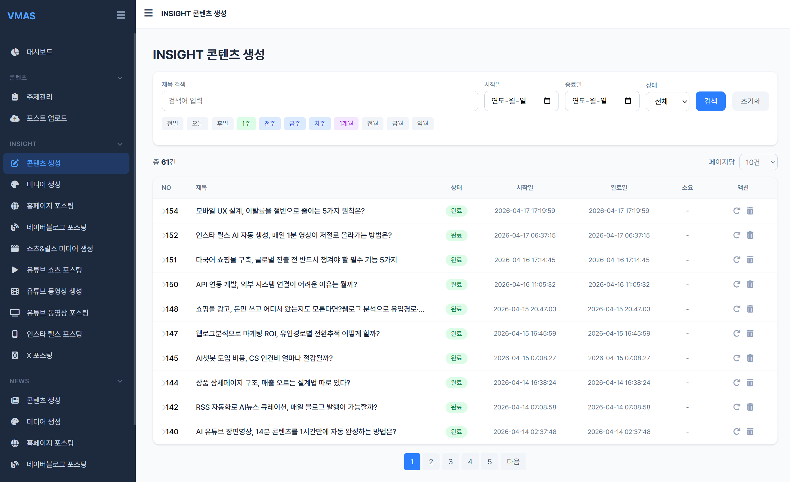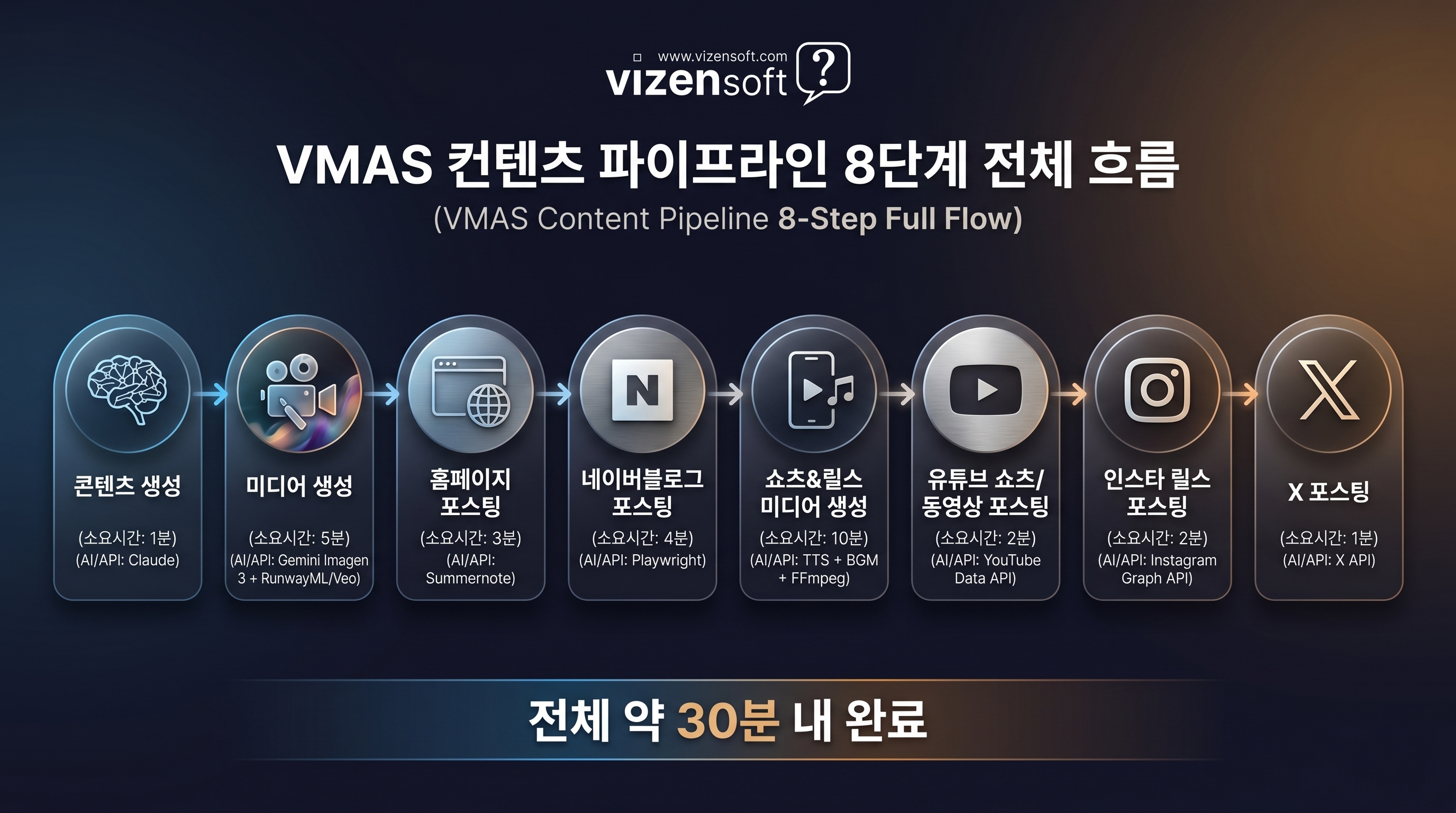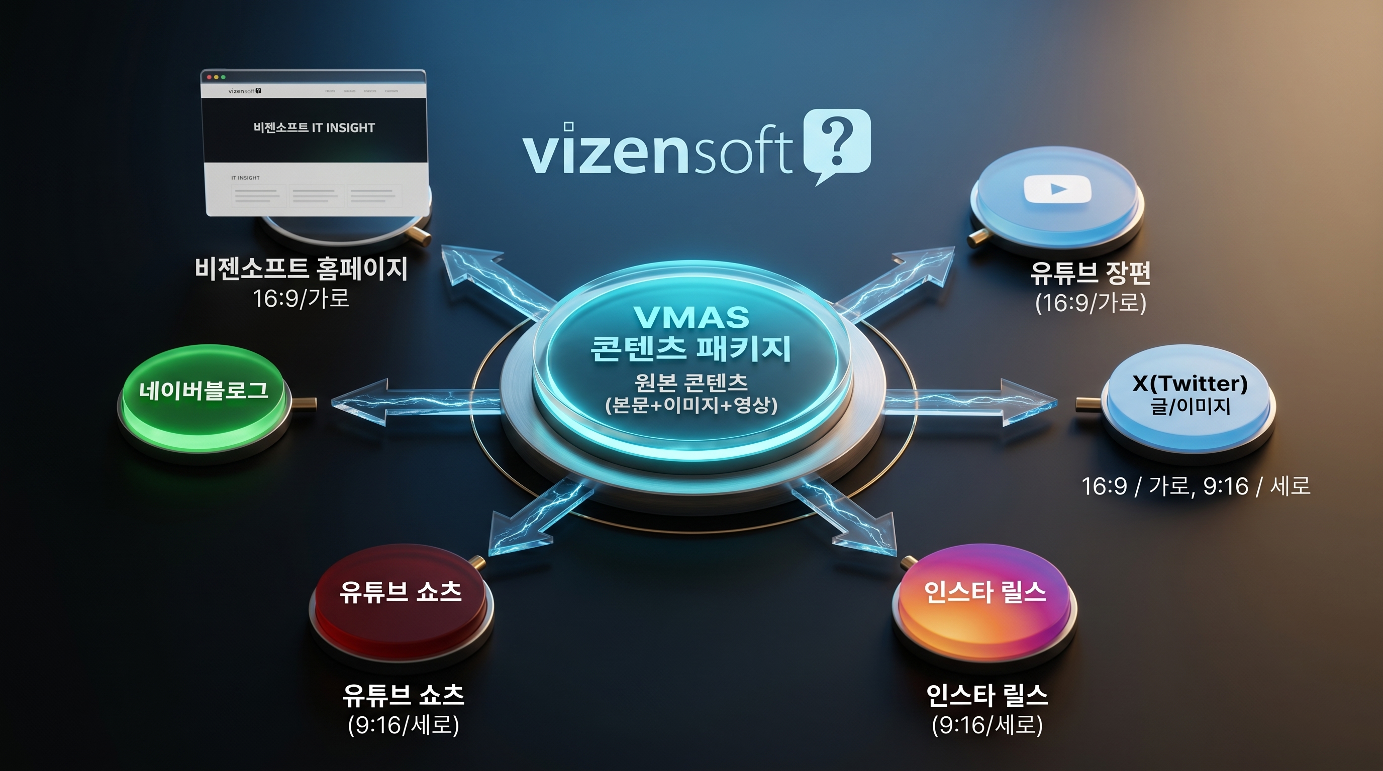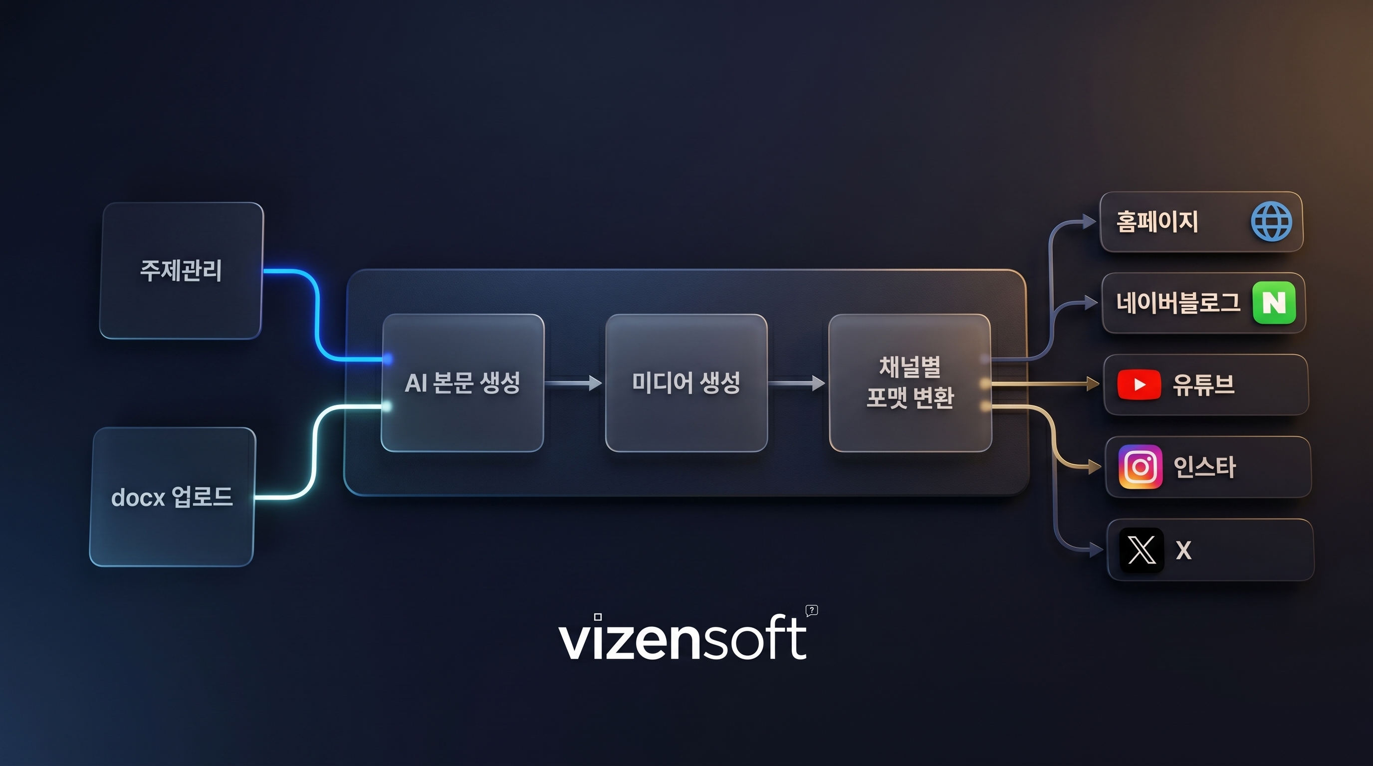 주제 발굴부터 블로그·유튜브·인스타·X 다채널 포스팅까지 — 비젠소프트 VMAS 컨텐츠 자동화 솔루션을 소개합니다.