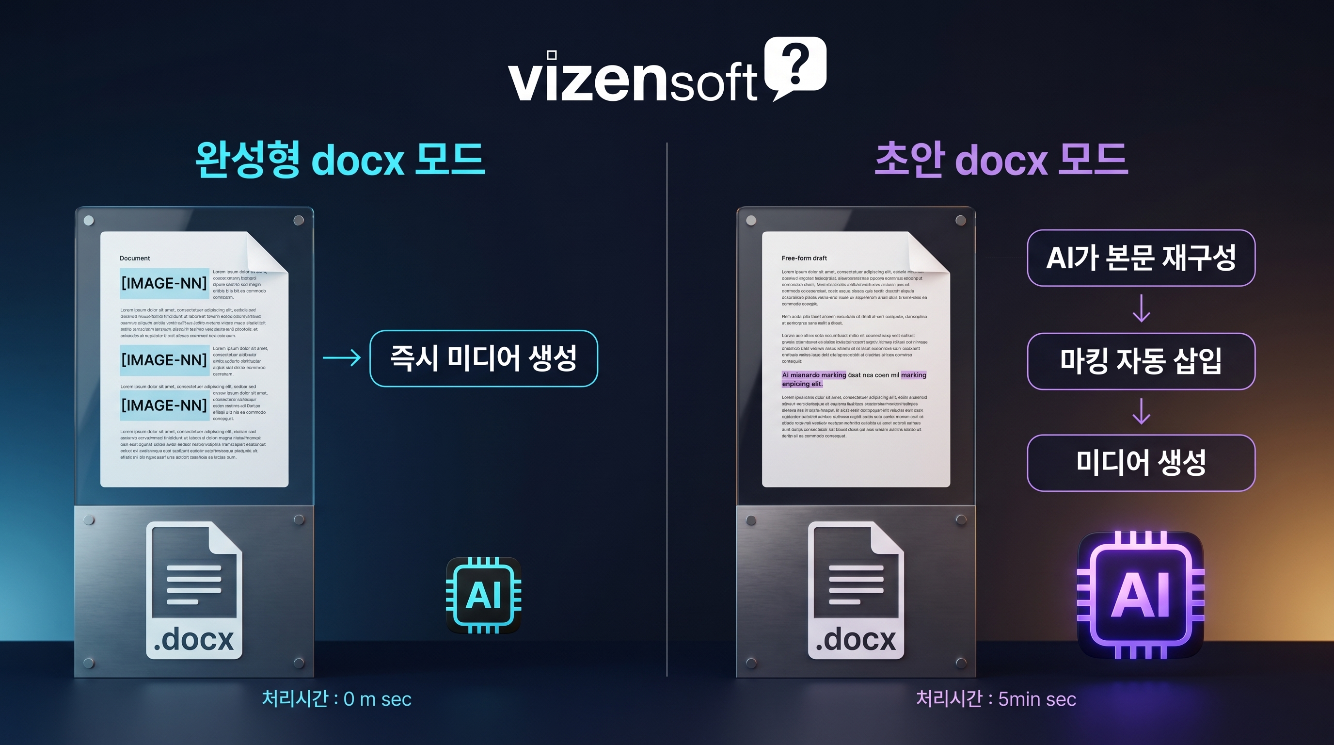 📌 Tip: 상단 우측 [도움말] 버튼을 누르면 초안 docx 작성 형식, [PROMPT] 블록 사용법, 처리 흐름을 모두 안내받을 수 있습니다.