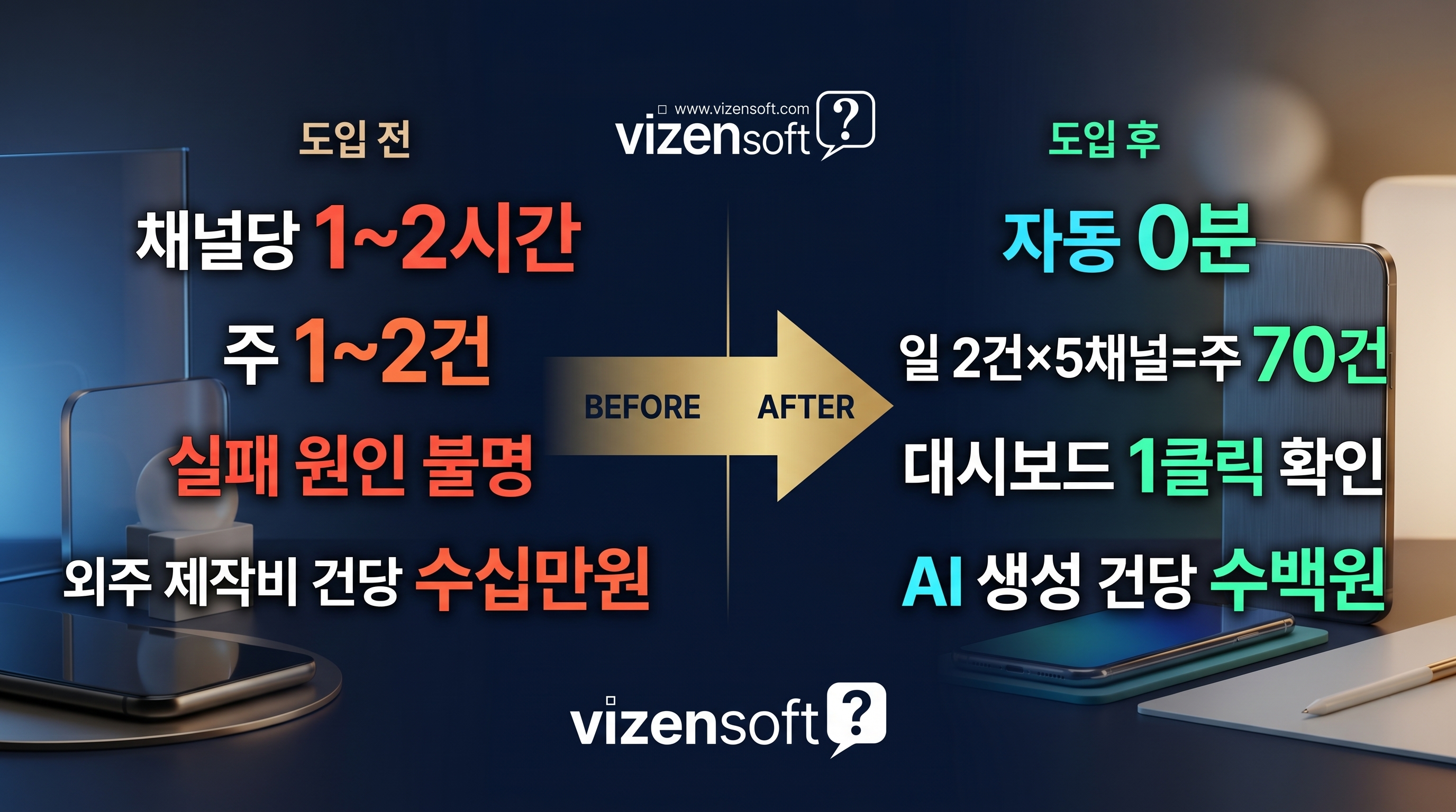채널당 포스팅 소요시간 | 1~2시간 (수작업) | 0분 (자동) |