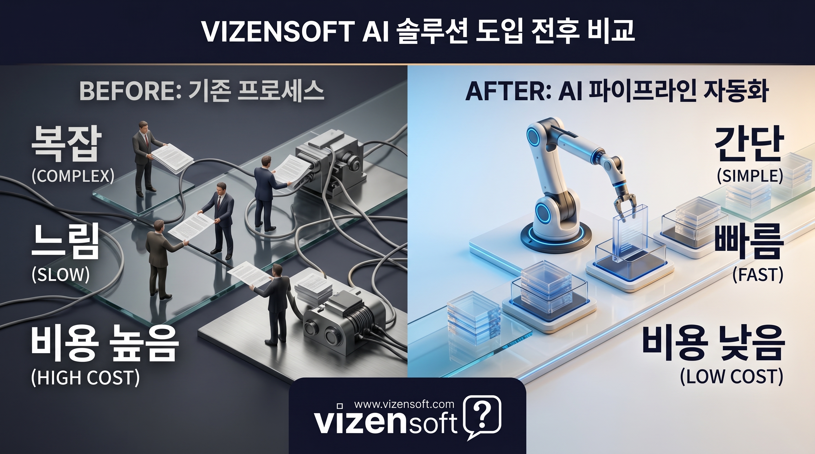 국내 시장에서도 변화가 빠릅니다. 국내 주요 이커머스 기업들은 이미 AI 파이프라인을 활용해 상품 소개 영상을 자동 생성하고 있으며, 콘텐츠 제작 비용을 기존 대비 60~80% 절감했다는 사례가 잇따라 보고되고 있습니다. 비젠소프트는 이러한 트렌드를 기업 맞춤형 AI 파이프라인 구축 서비스로 한국 시장에 제공하며 기업들의 디지털 전환을 지원하고 있습니다.