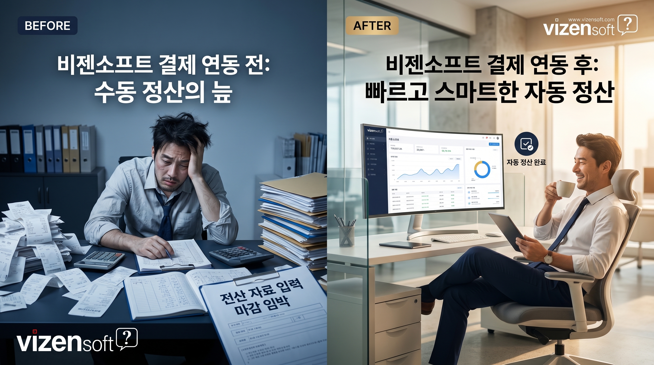비젠소프트는 토스페이먼츠 빌링키 기반 자동결제 시스템을 구축하고, 결제 실패 시 자동 재시도 및 고객 알림 시스템을 함께 개발했습니다. 또한 정산 데이터를 자사 ERP와 자동 연동하는 파이프라인을 구성했습니다. 결과적으로 C사의 정기결제 관련 CS 업무 시간이 월 평균 80시간 → 24시간으로 70% 감소했으며, 결제 실패율도 12%에서 4%로 대폭 낮아졌습니다.