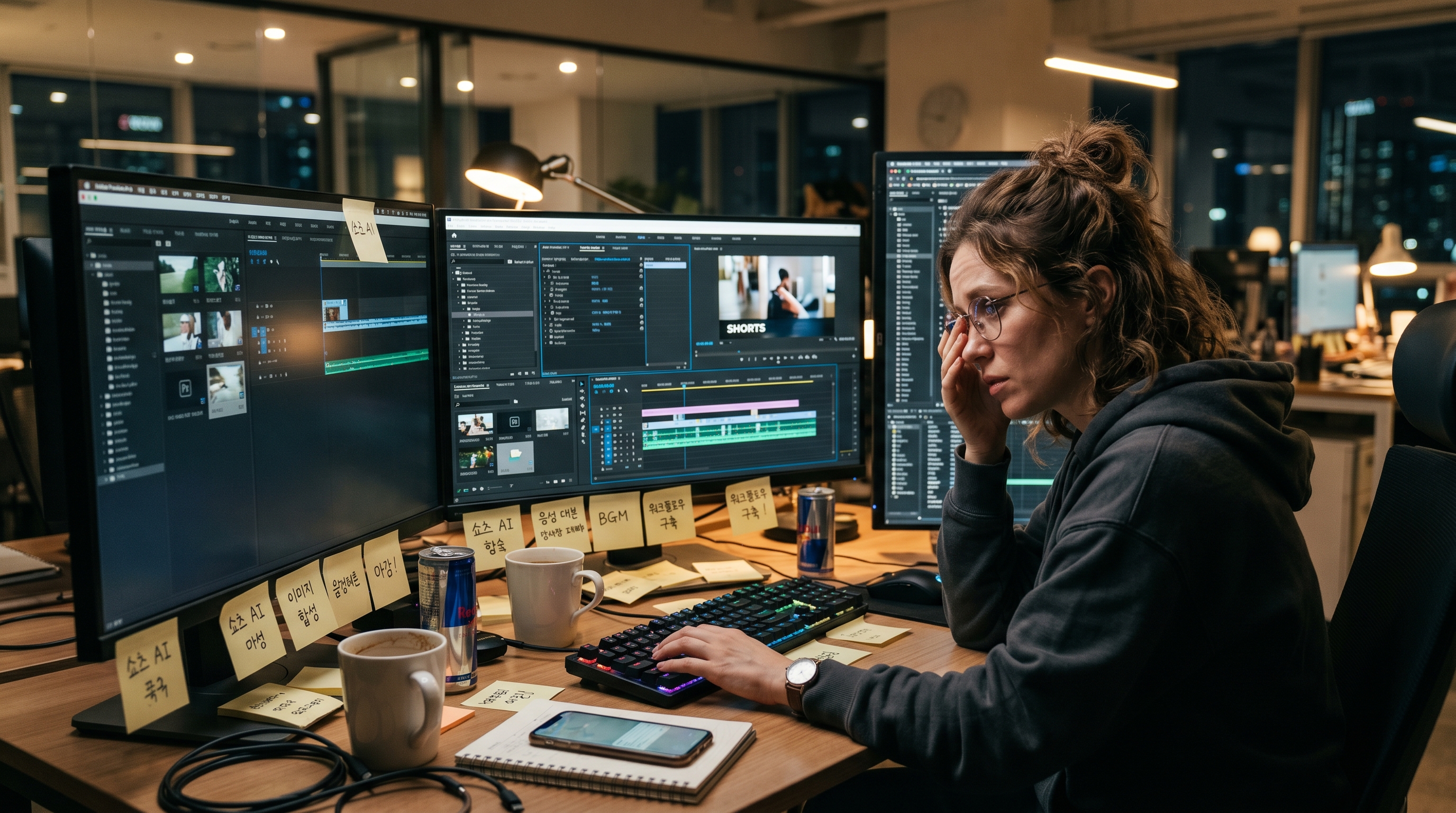 기존 쇼츠 1개 제작 소요 시간(평균 3시간) 대비, AI 자동화 후 실질 작업 시간은 스크립트 작성 30분 + 검수 10분 = 약 40분으로 80% 이상 단축됩니다.