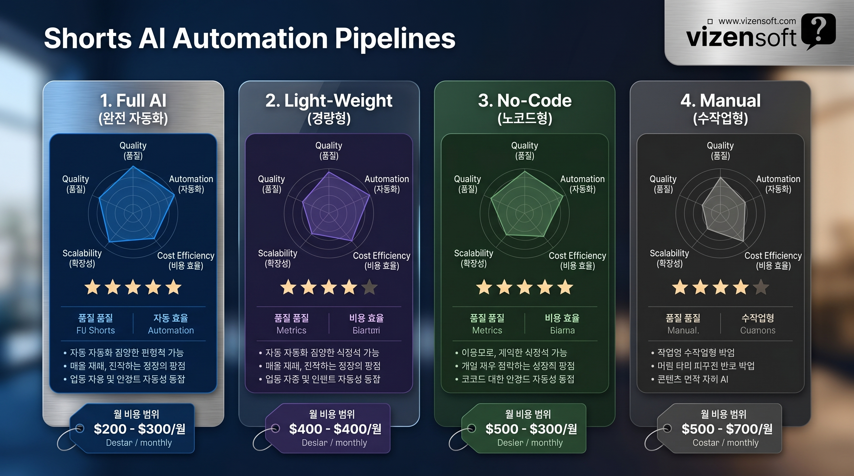 쇼츠 AI 자동화를 구성하는 도구는 다양하며, 각각의 특성과 장단점이 다릅니다. 목적과 예산, 기술 수준에 따라 최적의 조합이 달라지므로 비교 분석이 필수입니다.