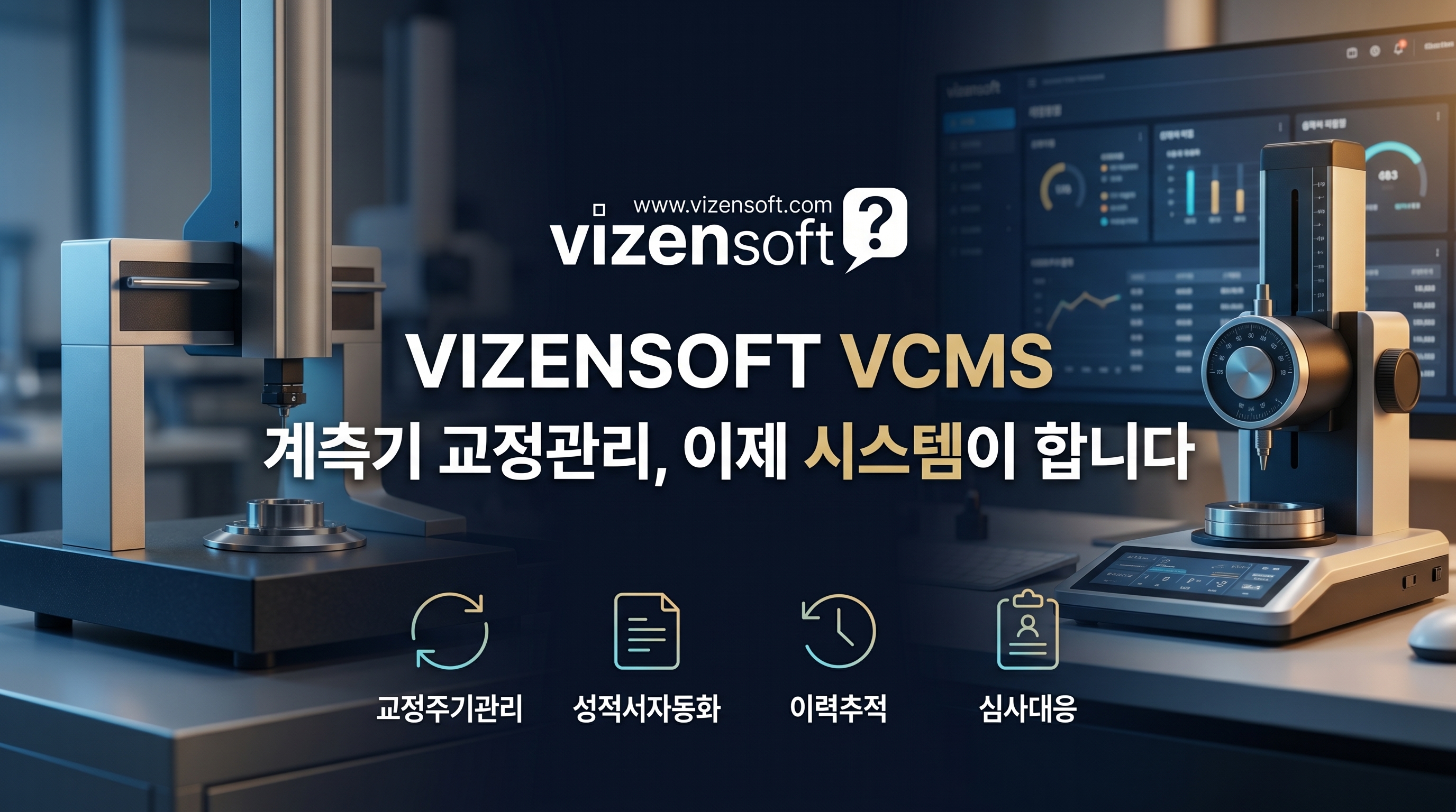 이런 문제를 근본적으로 해결하기 위해 탄생한 것이 바로 비젠소프트의 교정관리시스템 VCMS(Vizensoft Calibration Management System) 입니다. 이 글에서는 VCMS가 실제 현장에서 어떻게 계측기 교정 업무를 혁신했는지, 기능별로 상세히 살펴보겠습니다.
