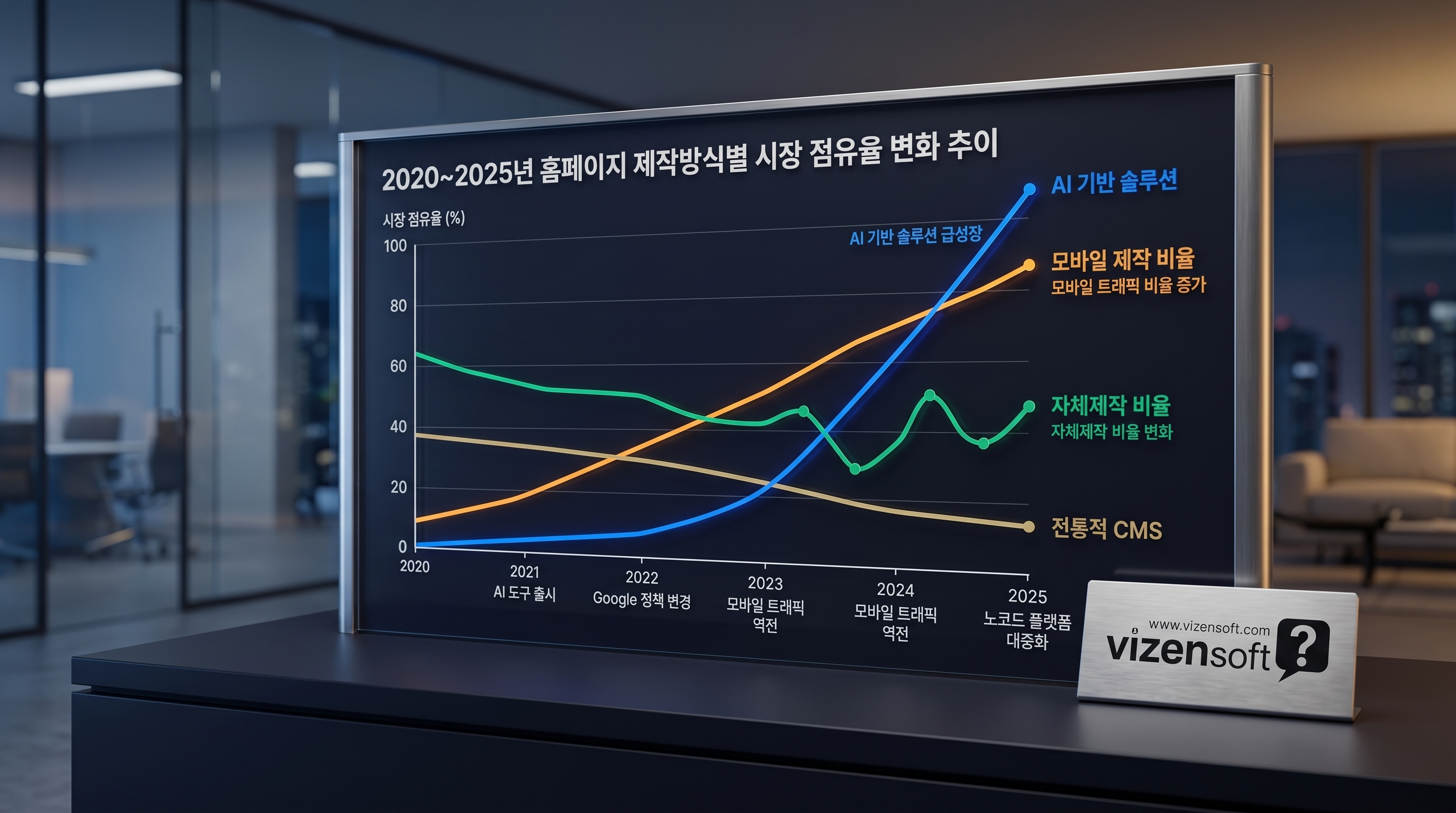 홈페이지 제작방식 선택은 현재 시장 트렌드를 이해하지 않고는 완성될 수 없습니다. 빠르게 변화하는 기술 환경과 사용자 기대치를 반영하지 못한 홈페이지는 아무리 비싸게 만들어도 경쟁력을 잃게 됩니다.