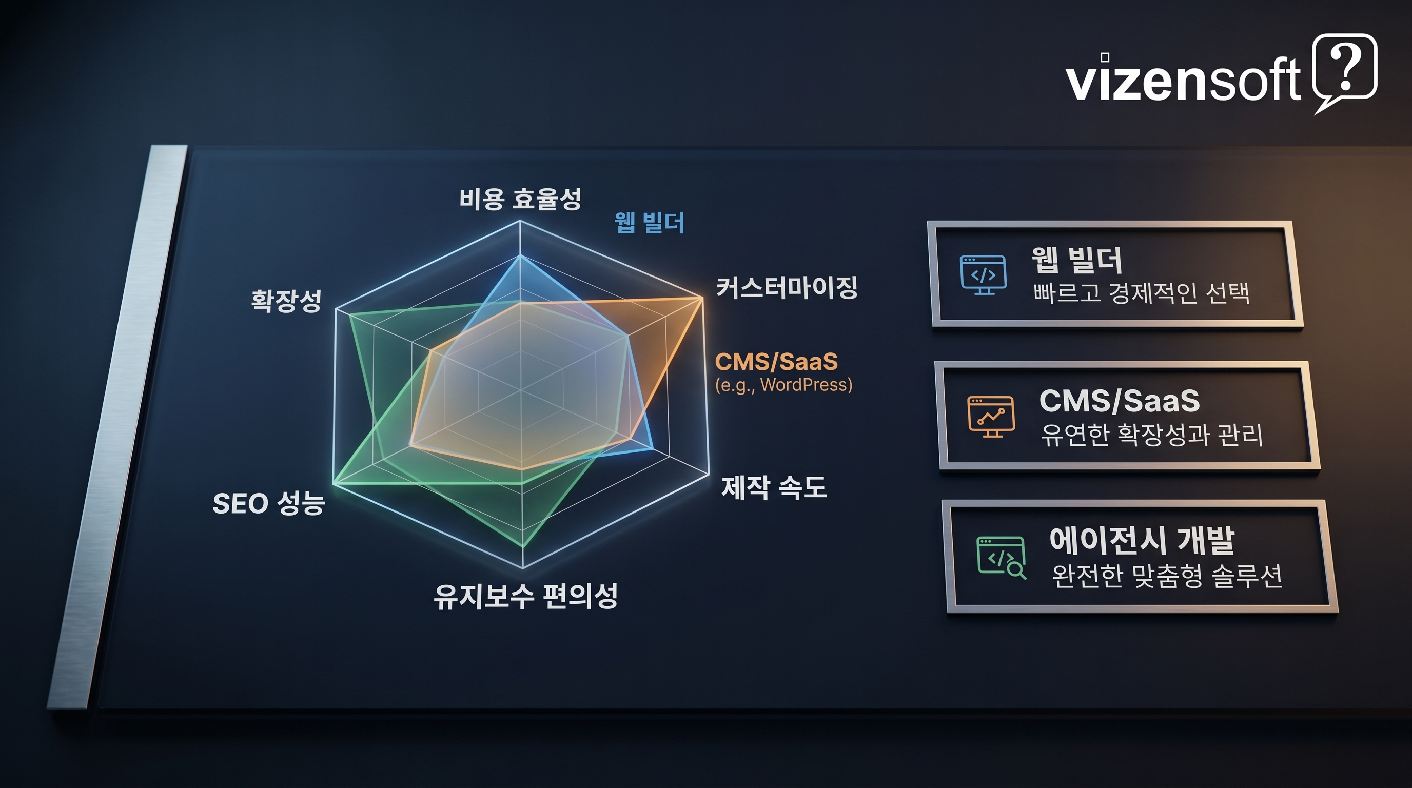 반대로 연간 매출 10억 원 이하의 소규모 기업, 스타트업 초기 단계, 기술 인력 채용이 어려운 지방 소재 기업에는 자체제작이 오히려 독이 될 수 있습니다. 핵심 사업에 집중해야 할 자원이 웹 개발·운영에 분산되기 때문입니다.