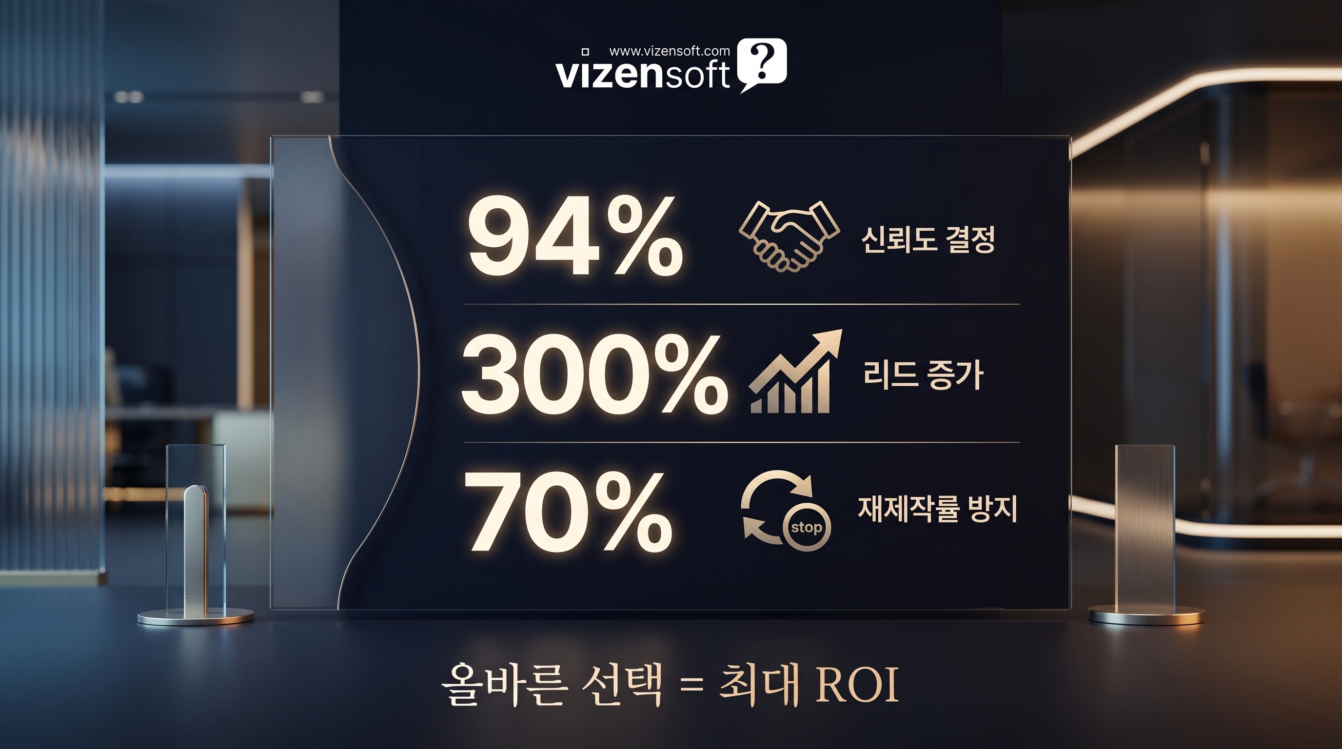 홈페이지 제작방식을 올바르게 선택하고 전략적으로 운영했을 때 기대할 수 있는 정량적 효과를 정리합니다.