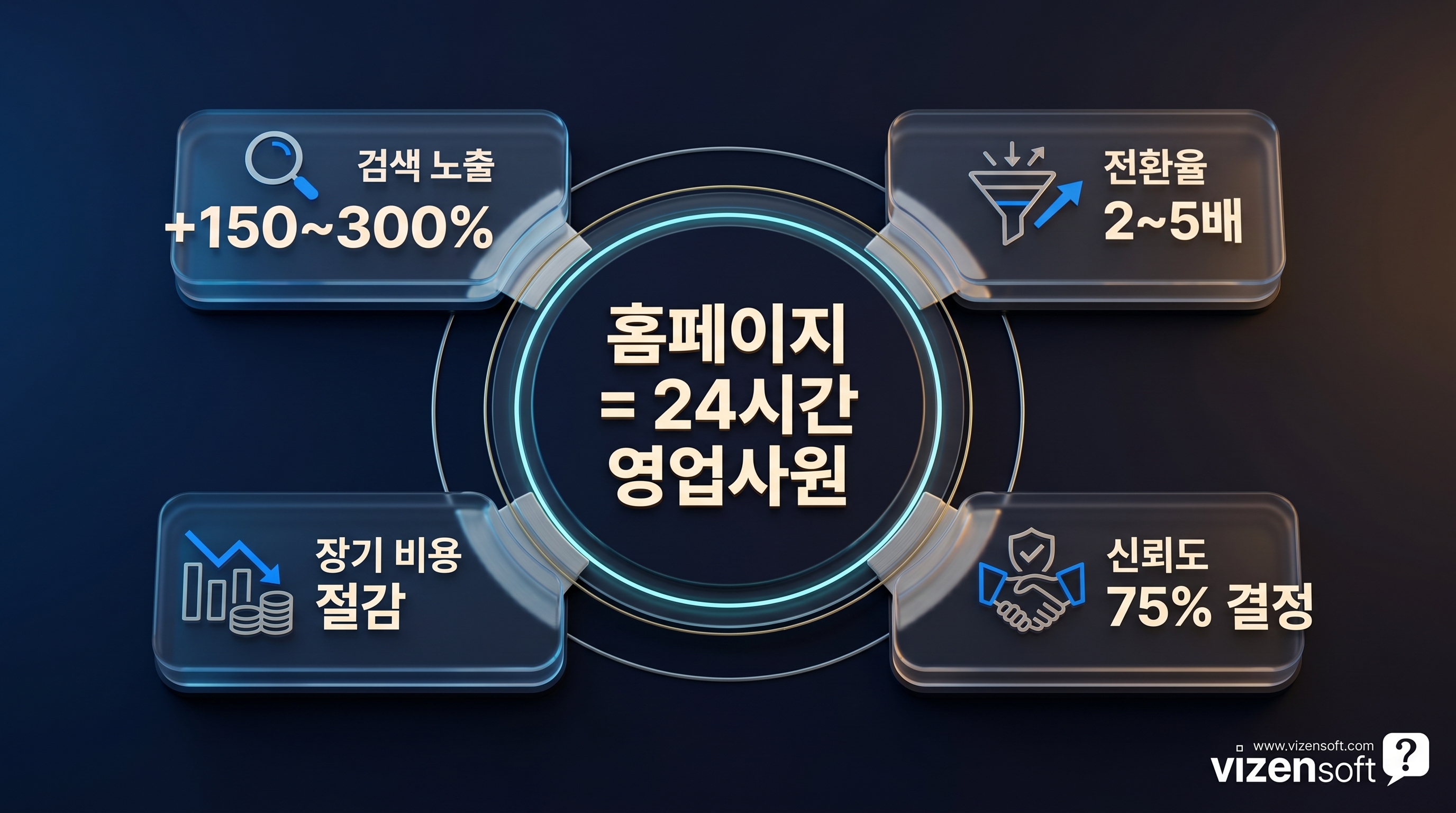 홈페이지는 비용이 아니라 투자입니다. 제대로 설계된 홈페이지는 24시간 365일 쉬지 않고 영업 활동을 수행하는 디지털 영업사원과 같습니다. 구체적인 ROI를 수치로 살펴보겠습니다.