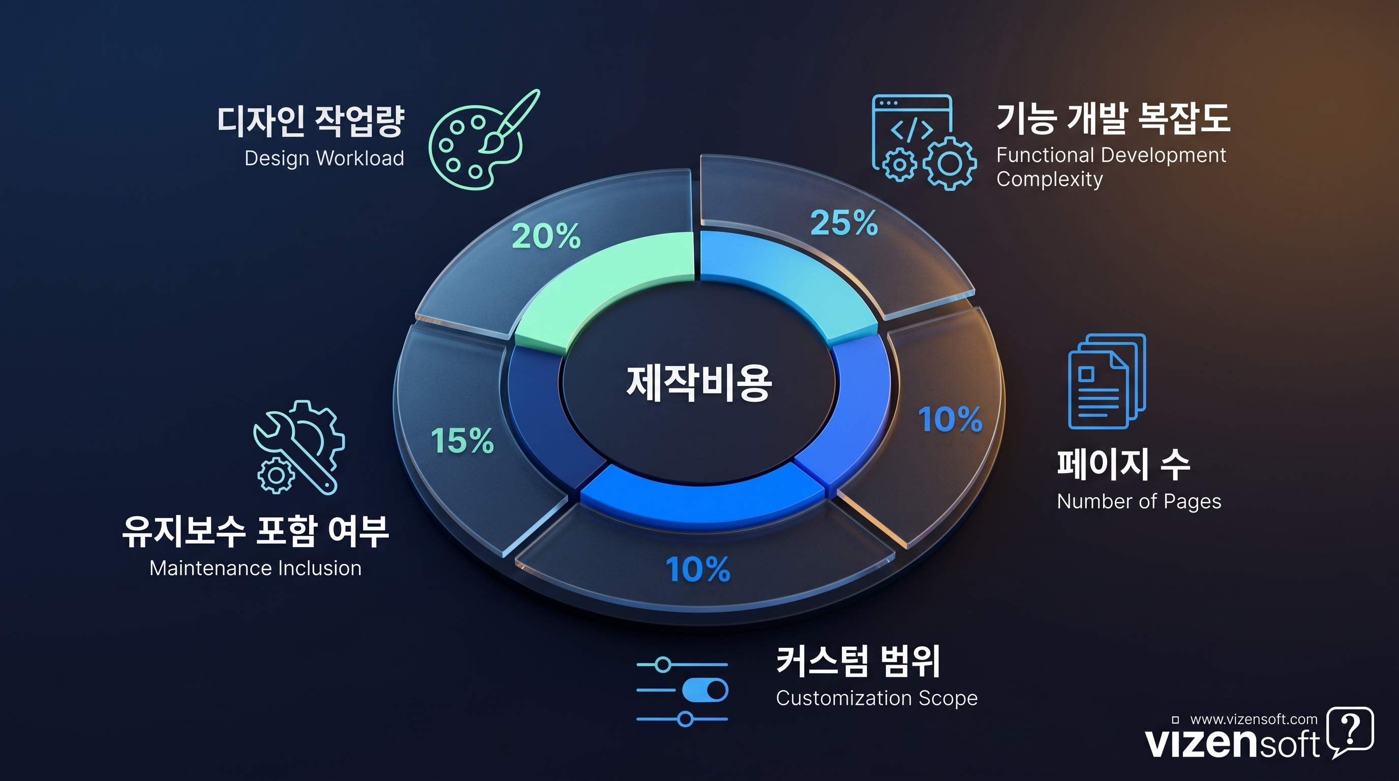 A. 업체마다 다릅니다. 일부 업체는 제작비에 1년 호스팅을 포함하고, 일부는 별도 청구합니다. 견적을 받을 때 도메인 비용, 호스팅 비용, SSL 인증서 비용, 유지보수 비용이 포함인지 별도인지 반드시 확인하세요. 이를 포함하면 실제 연간 운영 비용이 제작비의 10~20% 추가 발생하는 경우가 많습니다.
