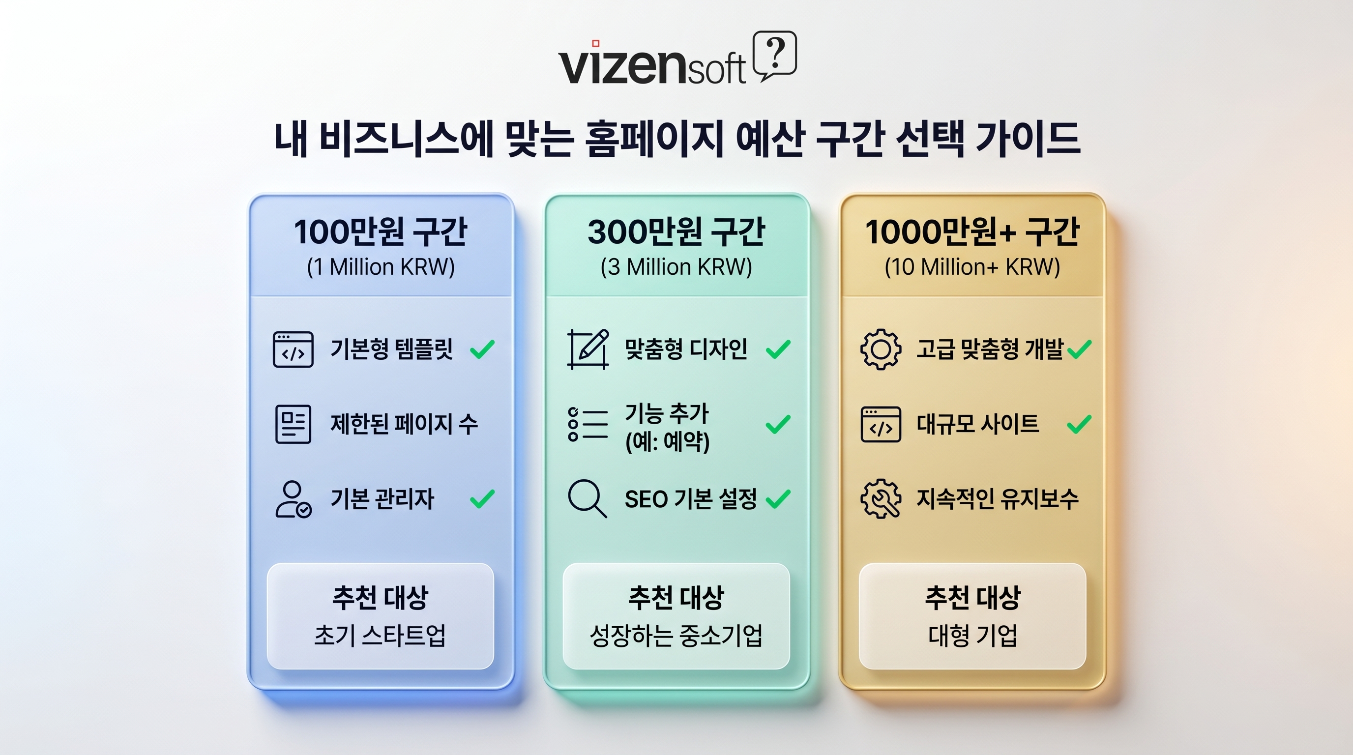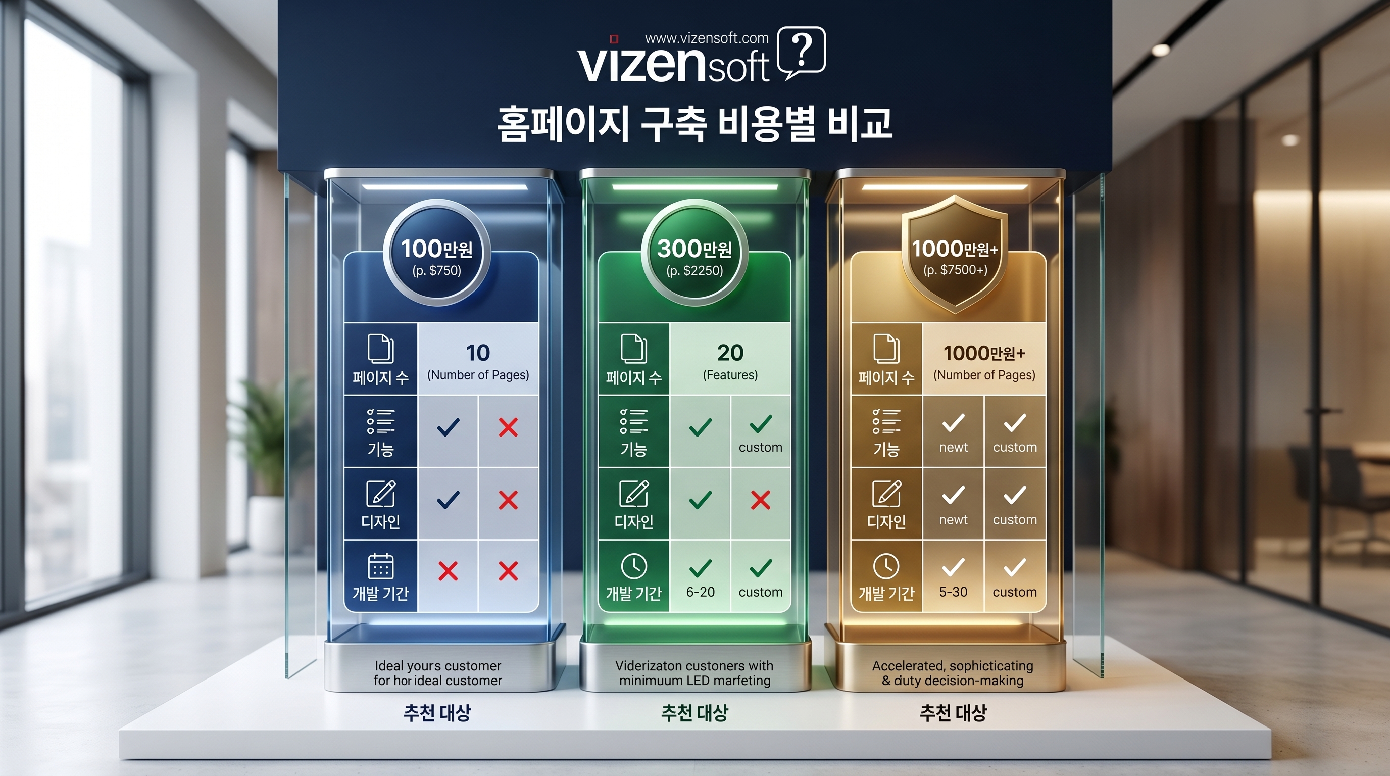 # 홈페이지 제작비용 100만원 · 300만원 · 1,000만원, 뭘 더 주고 뭘 더 받나?