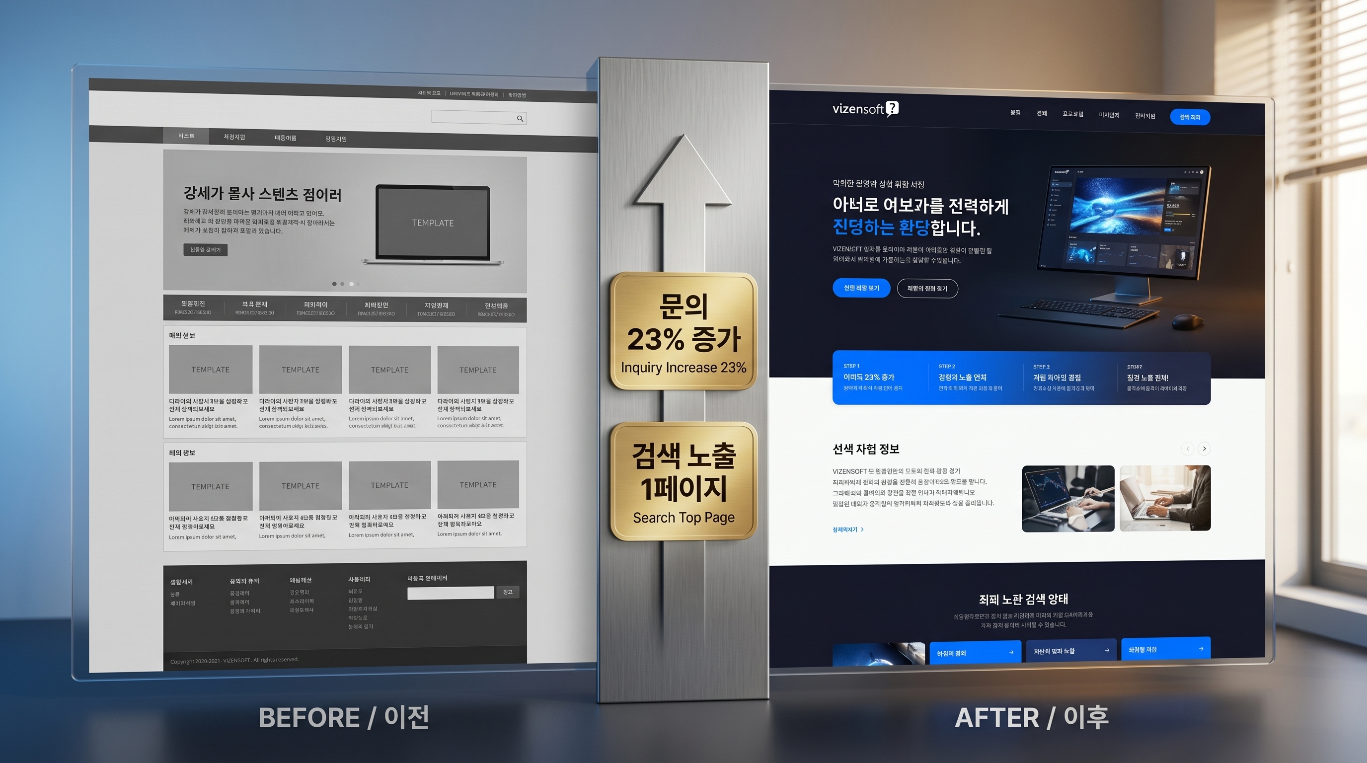 직원 40명 규모의 산업용 부품 제조사 B사는 영업사원들이 고객사 미팅 전 "회사 소개 좀 보내주세요"라는 요청을 받을 때마다 PDF 파일을 이메일로 보내는 비효율적인 방식을 사용하고 있었습니다. 커스텀 디자인 홈페이지 20페이지에 제품 카탈로그 게시판, 납품 실적 사례 갤러리, 공지사항, 채용 게시판을 구축했습니다. 홈페이지 오픈 후 거래처 미팅 성사율이 23% 향상되었고, 구글 검색에서 주요 제품 키워드로 1페이지 노출이 시작되면서 6개월 만에 신규 문의가 월 15건 이상 발생하는 성과를 얻었습니다.
