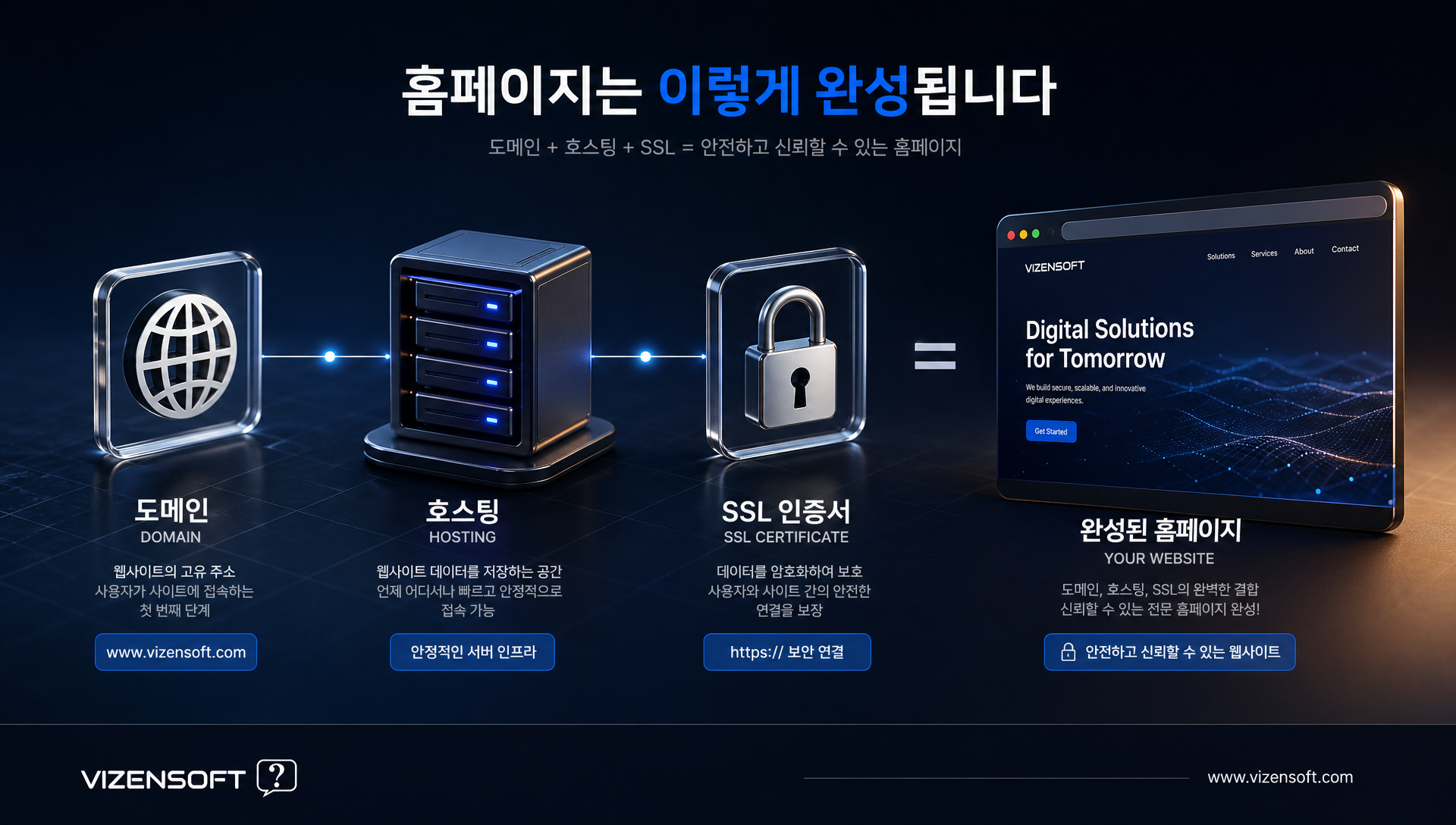 홈페이지를 처음 만들어보려는 사업자분들이 가장 많이 하는 질문입니다. "그냥 디자인 업체에 맡기면 되는 거 아닌가요?" "홈페이지 만드는 데 얼마예요?" — 이런 질문을 하시는 분들의 공통점이 있습니다. 도메인, 호스팅, SSL이라는 개념 자체를 들어본 적이 없다는 것이죠.