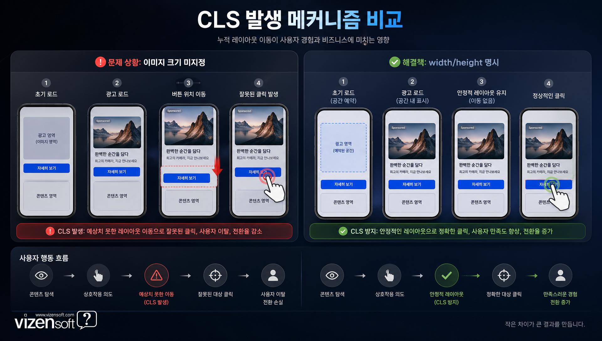 CLS가 사업에 미치는 영향은 생각보다 훨씬 큽니다. 온라인 쇼핑몰에서 "장바구니 담기" 버튼을 누르려는 순간 광고가 로드되면서 버튼 위치가 바뀌어 다른 곳을 클릭하게 되는 경험 — 이것이 바로 CLS입니다. 이런 경험은 사용자에게 극심한 불쾌감을 주고, 이탈로 이어집니다. 실제로 BBC의 사례 연구에서 CLS를 개선한 후 광고 수익이 16% 증가하는 효과가 나타난 바 있습니다.