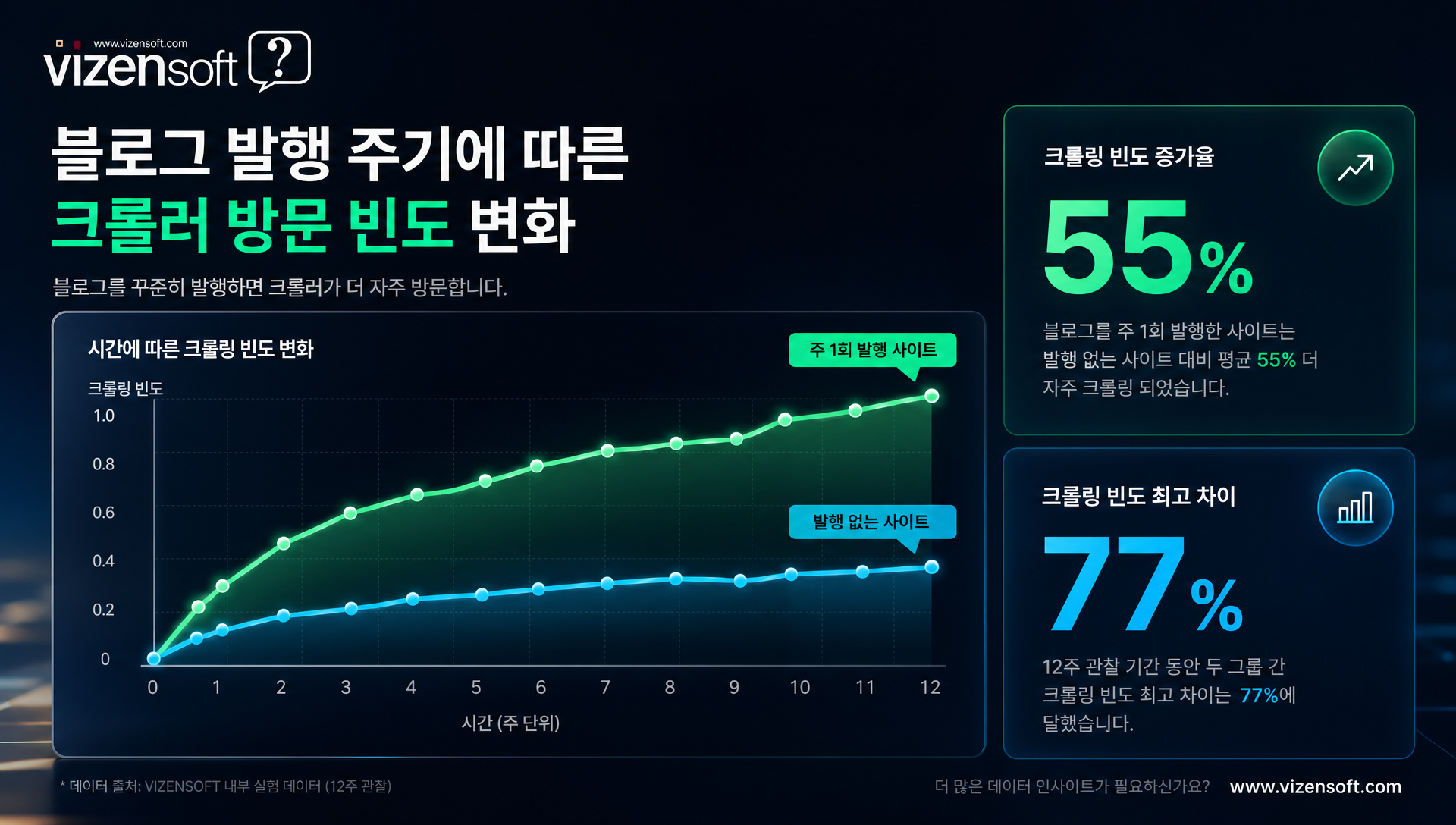 Google Search Console 데이터에 따르면, 주기적으로 콘텐츠를 발행하는 사이트는 그렇지 않은 사이트에 비해 크롤링 빈도가 평균 3~5배 높다는 분석 결과가 나와 있습니다. 크롤링 빈도가 높다는 것은 새로운 키워드로 검색 결과에 더 빠르게 반영된다는 뜻이고, 결국 더 많은 검색 유입 기회를 갖게 된다는 의미입니다.