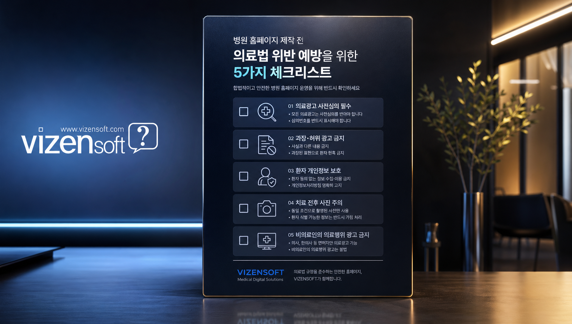 # 병원홈페이지 제작 전, 의료법 위반 피하는 5가지 체크리스트