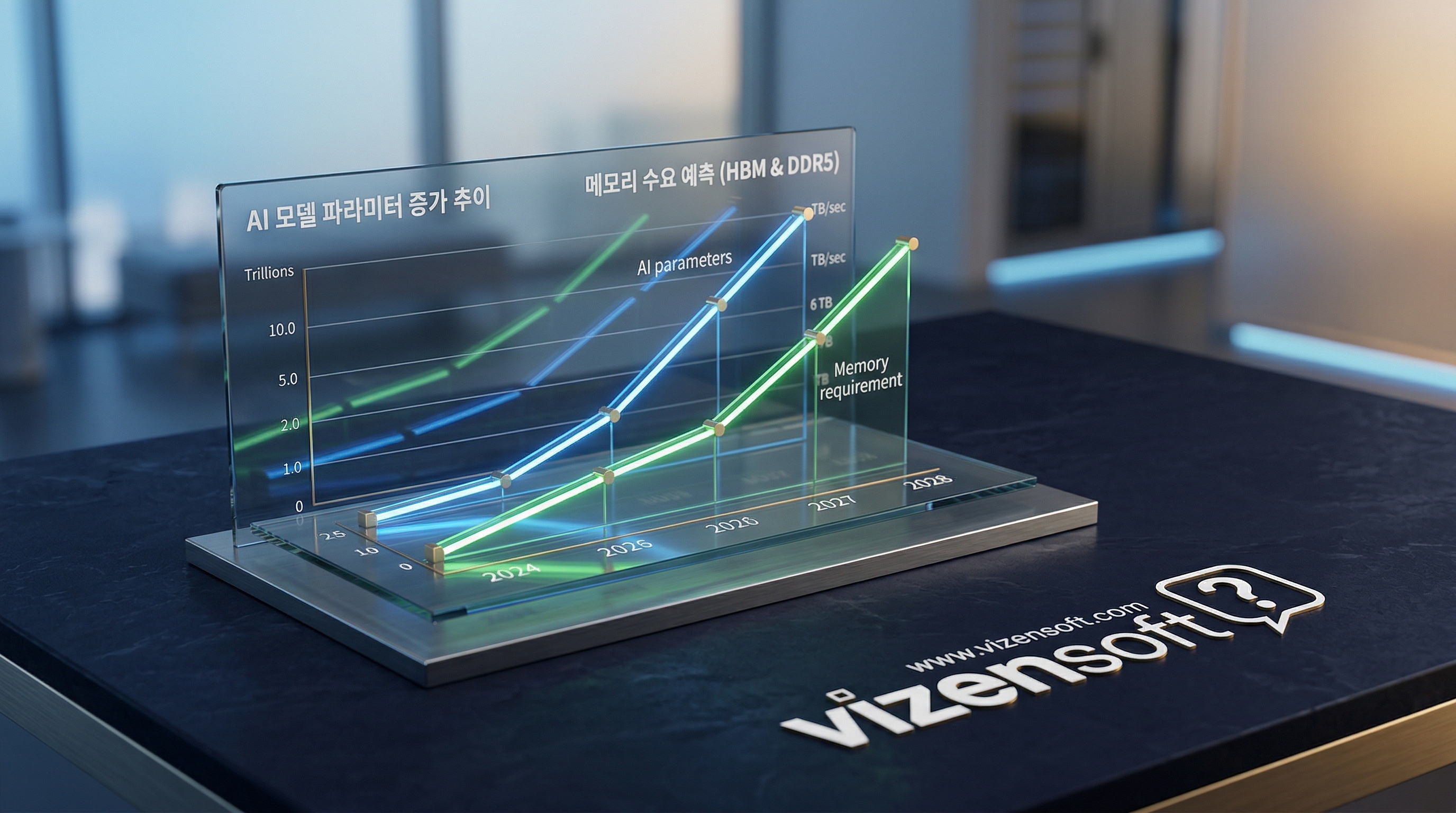 현재의 메모리 슈퍼사이클은 단순한 호황이 아닌 구조적 변화입니다. AI 모델의 파라미터 수가 기하급수적으로 증가하면서, HBM 수요는 '선형 증가'가 아닌 '지수적 폭증' 양상을 보이고 있습니다.
