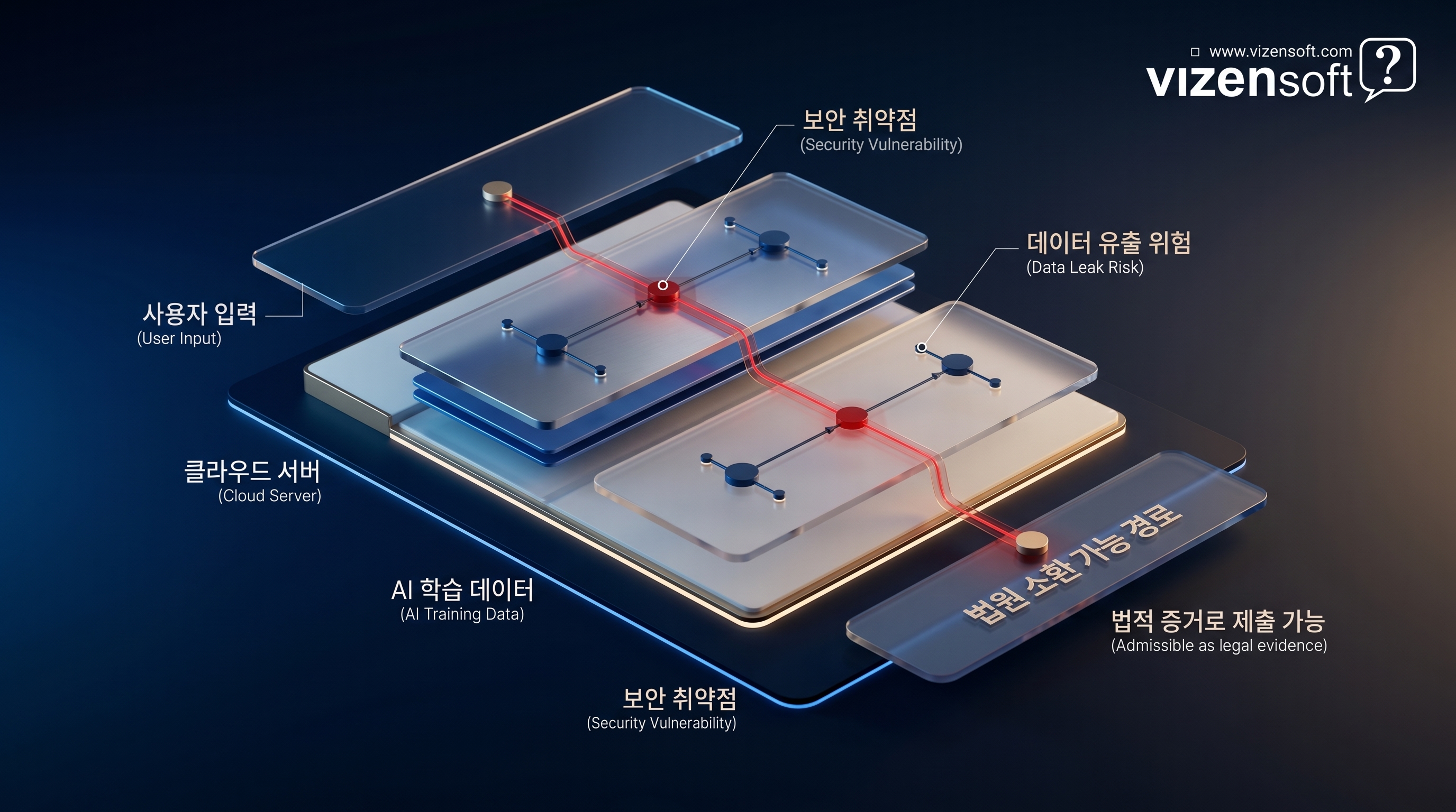 AI 챗봇은 이 두 조건을 모두 충족하지 못한다. 공개 AI 플랫폼에 입력된 데이터는 기업 서버에 저장되고, 학습에 활용될 수 있으며, 법원 명령 시 제출 의무가 발생한다. 이 구조 자체가 '비밀 유지'와 본질적으로 충돌한다.