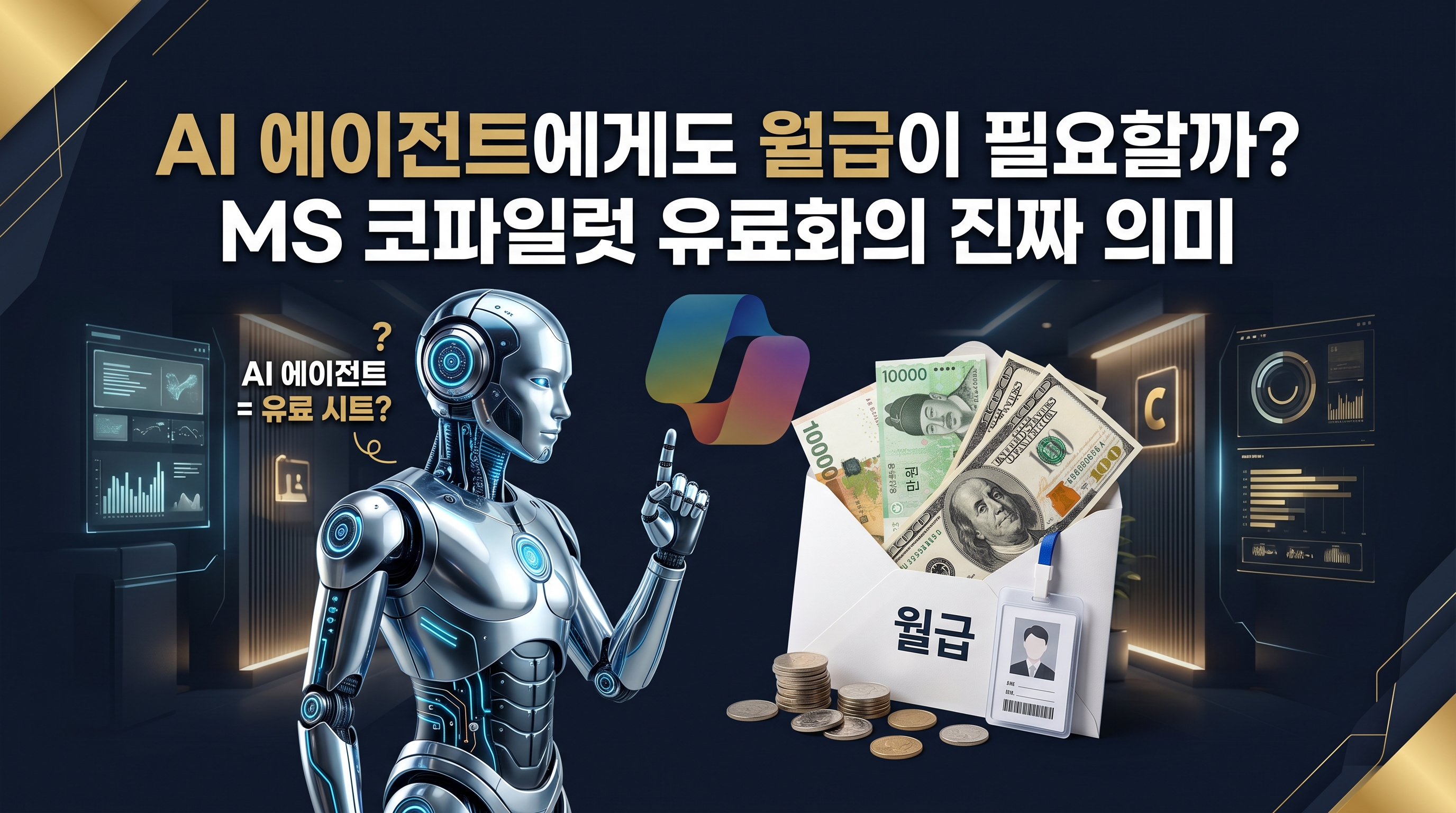 AI 에이전트에게도 월급이 필요할까? MS 코파일럿 유료화의 진짜 의미 - > "AI 직원 50명을 쓰면, 50인분의 라이선스를 내야 한다" — 이 한마디가 AI 업계의 수