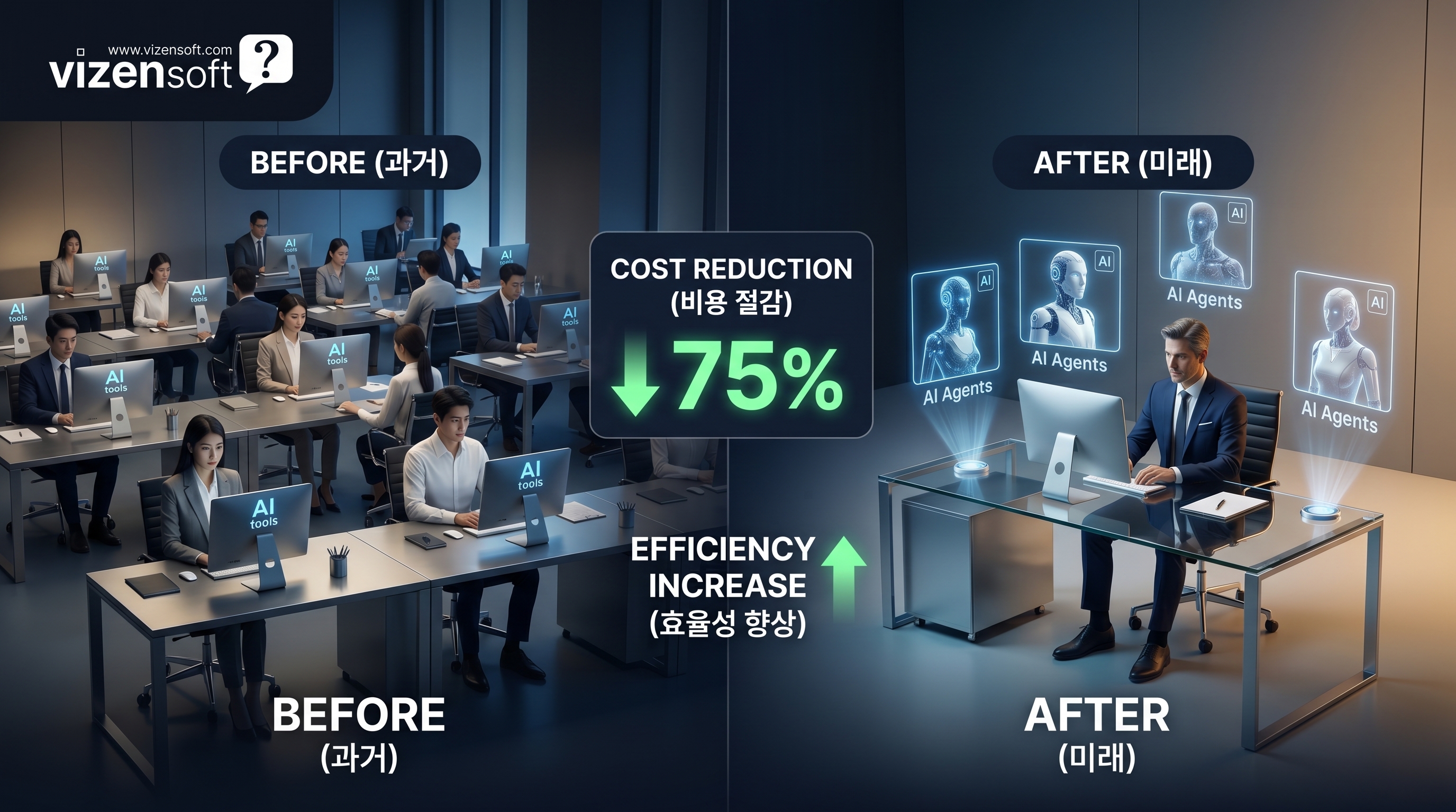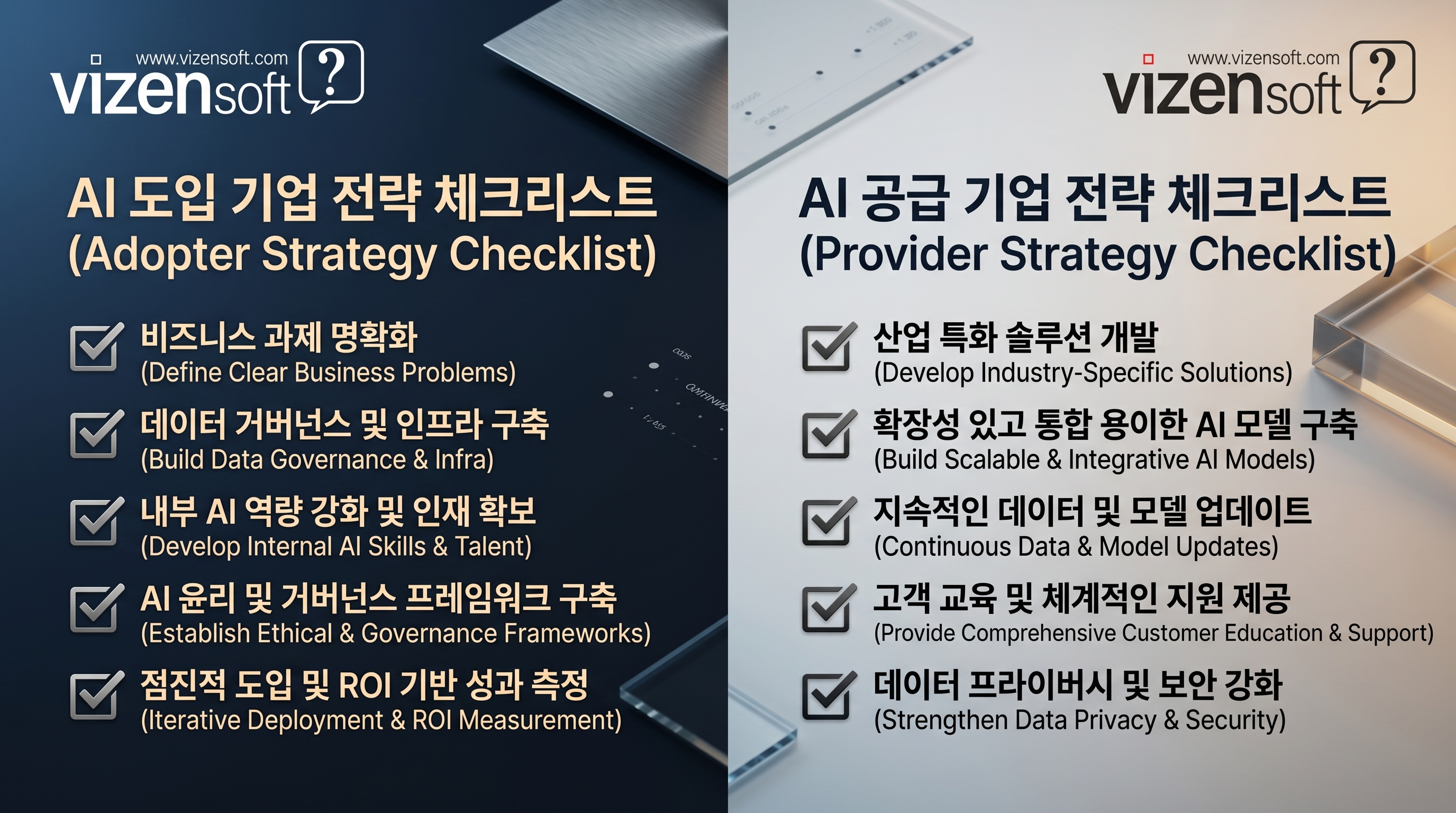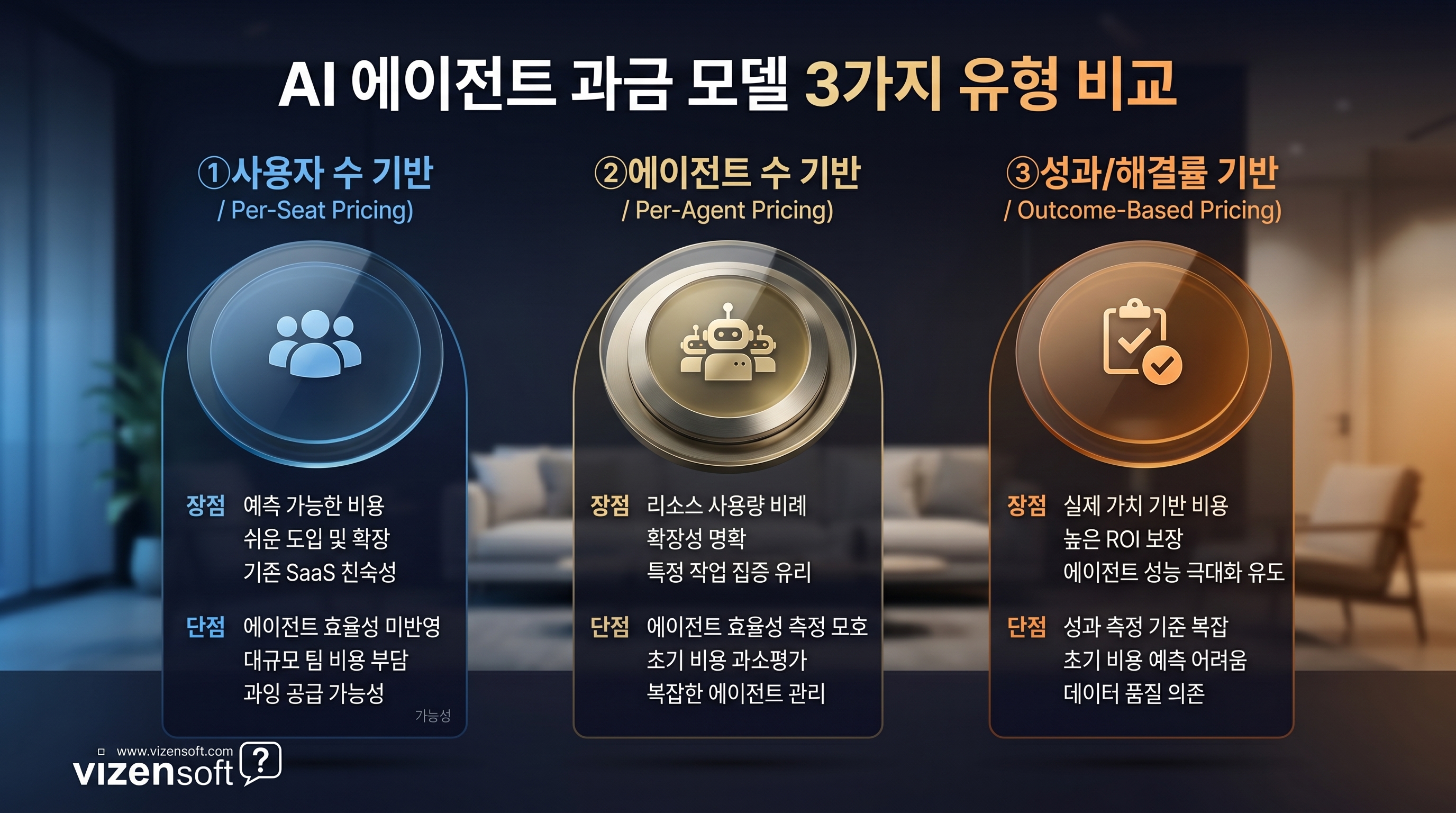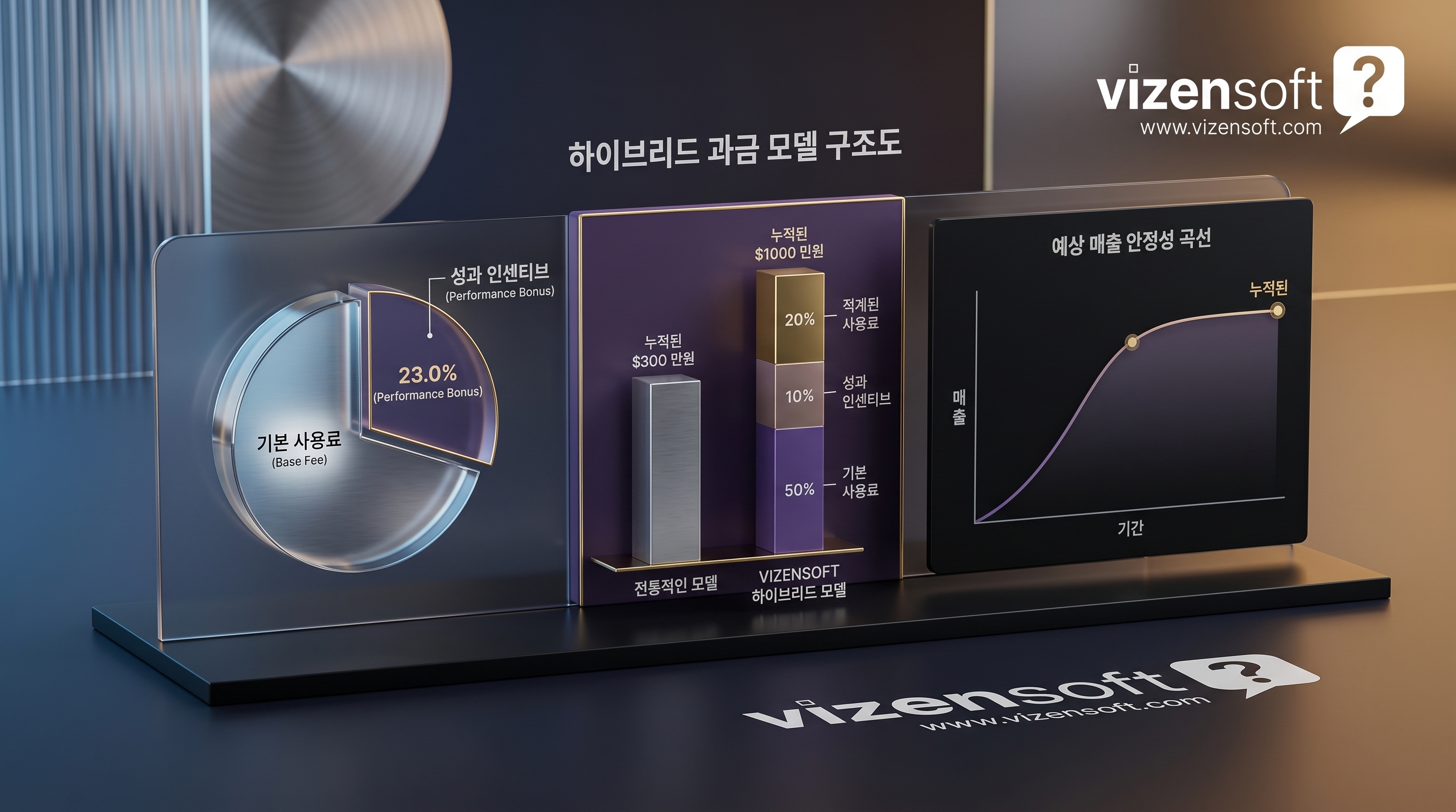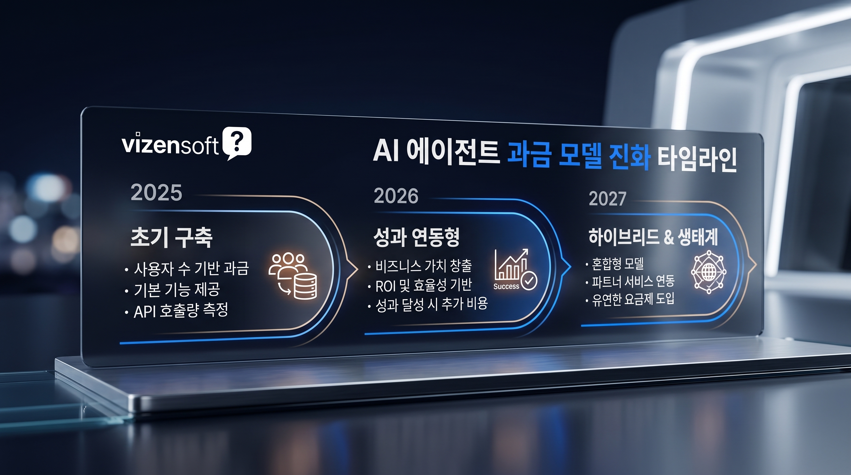Vizensoft는 이 중 '성과 기반 + 사용량 기반의 하이브리드 모델'이 중장기적으로 시장 표준이 될 것으로 전망합니다. 기업 고객은 매달 청구액이 불확실한 순수 성과 기반 모델을 기피하는 경향이 있습니다. 따라서 기본 사용료(최소 보장 과금)에 성과 인센티브를 결합하는 구조가 양측의 니즈를 동시에 충족시킬 가능성이 높습니다.