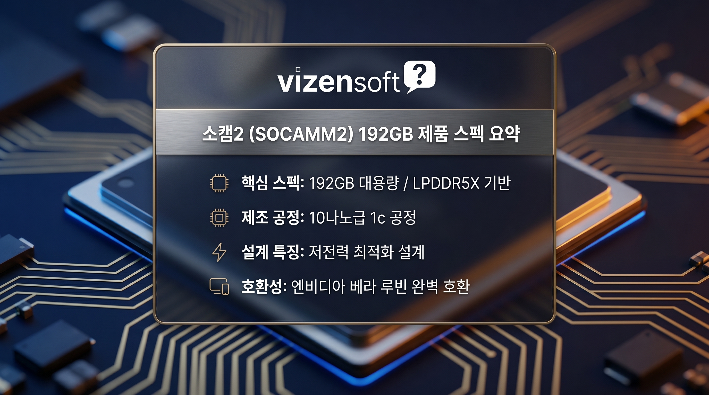 ① SK하이닉스가 LPDDR5X 기반 소캠2(SOCAMM2) 192GB 제품 양산을 공식 선언했다.