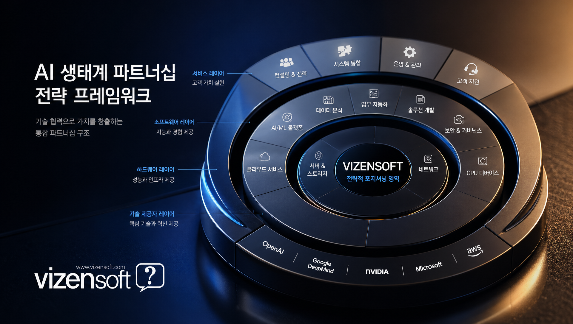 vizensoft는 AI 기술 전략 수립부터 실제 도입 지원까지, 기업이 AI 황금기의 주역이 될 수 있도록 함께합니다.