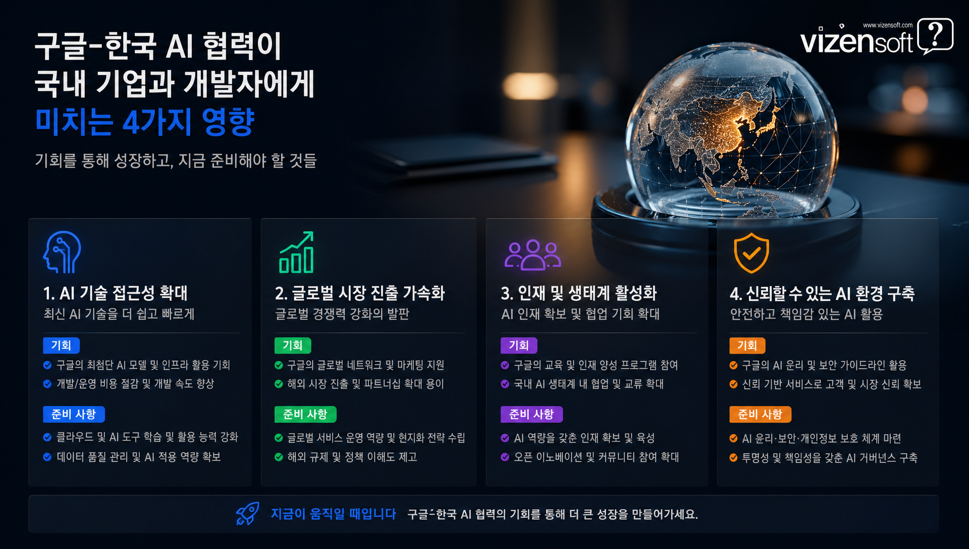 이번 구글-한국 협력 확대는 실무 개발자와 기업 의사결정자 모두에게 직접적인 파급효과를 가져온다.