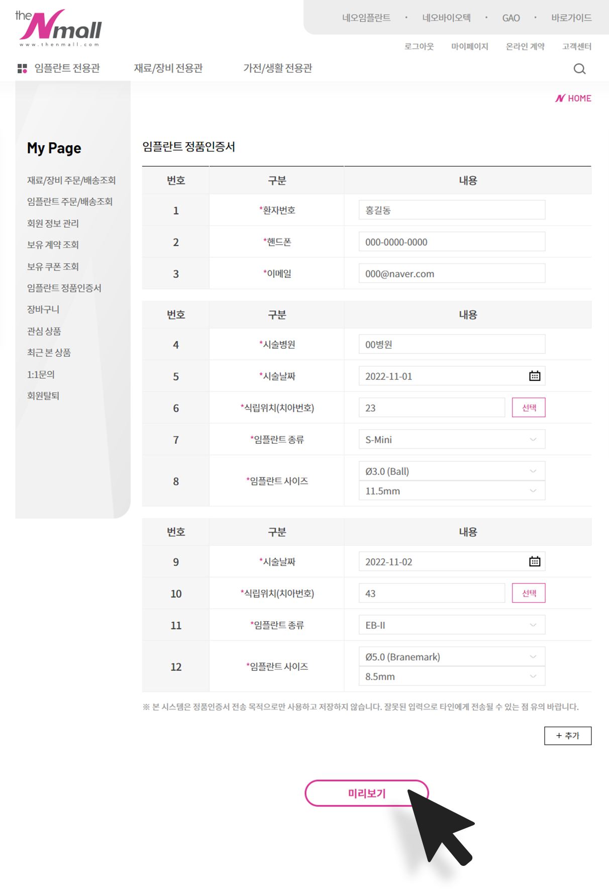 전체 쇼핑몰에는 SEO 키워드(예: 임플란트 쇼핑몰, 치과용품 할인, 네오바이오텍 제휴사,