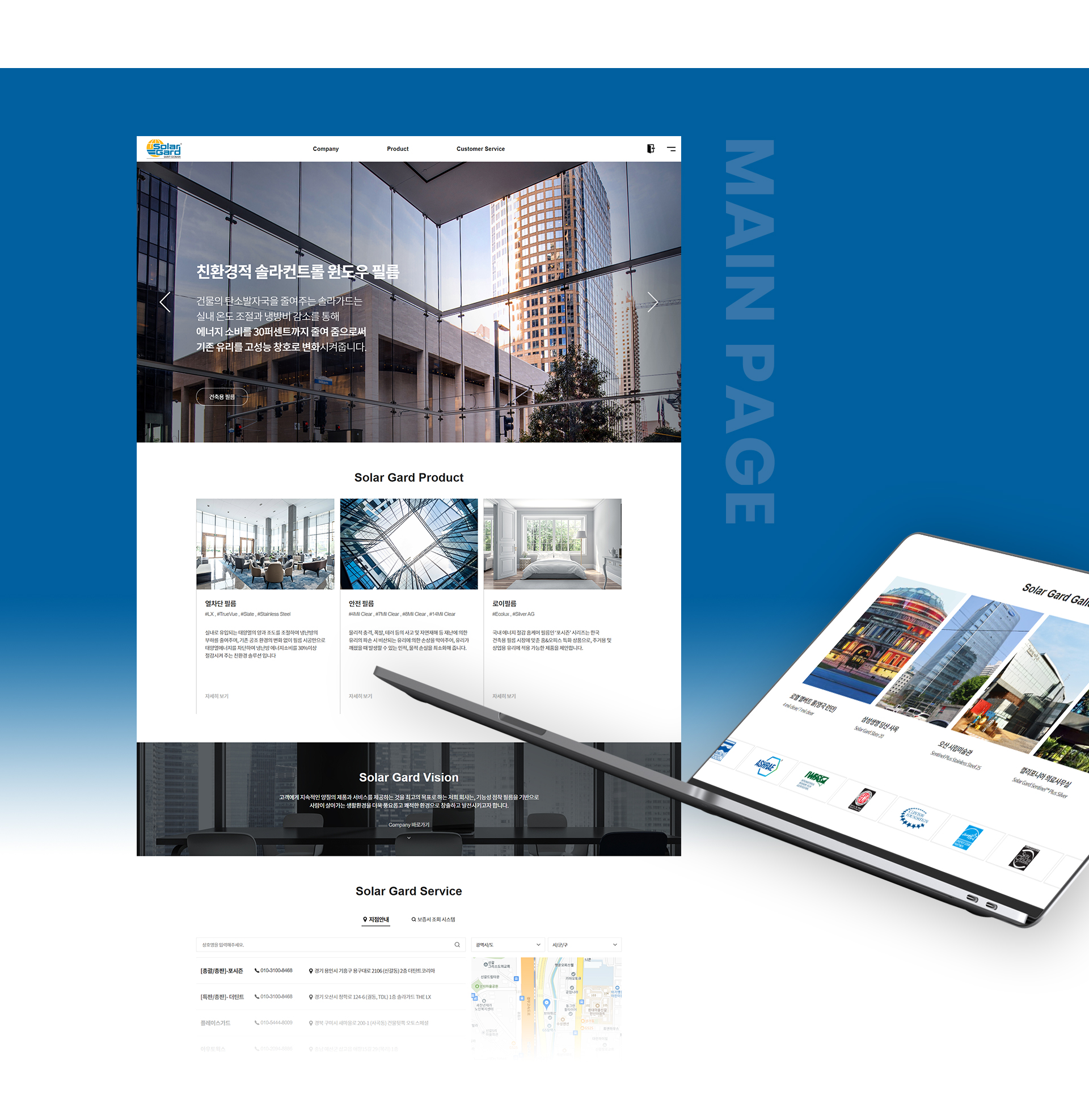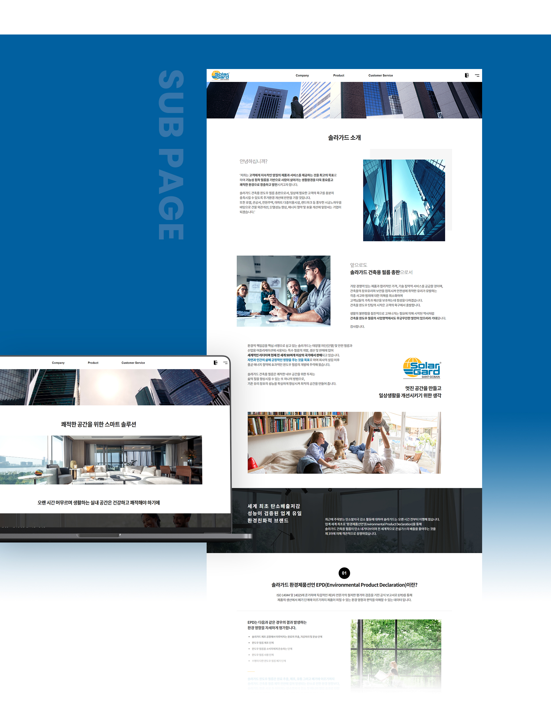 이미지 배치를 크게 하여 시원한 느낌과 솔라가드 건축용 필름이