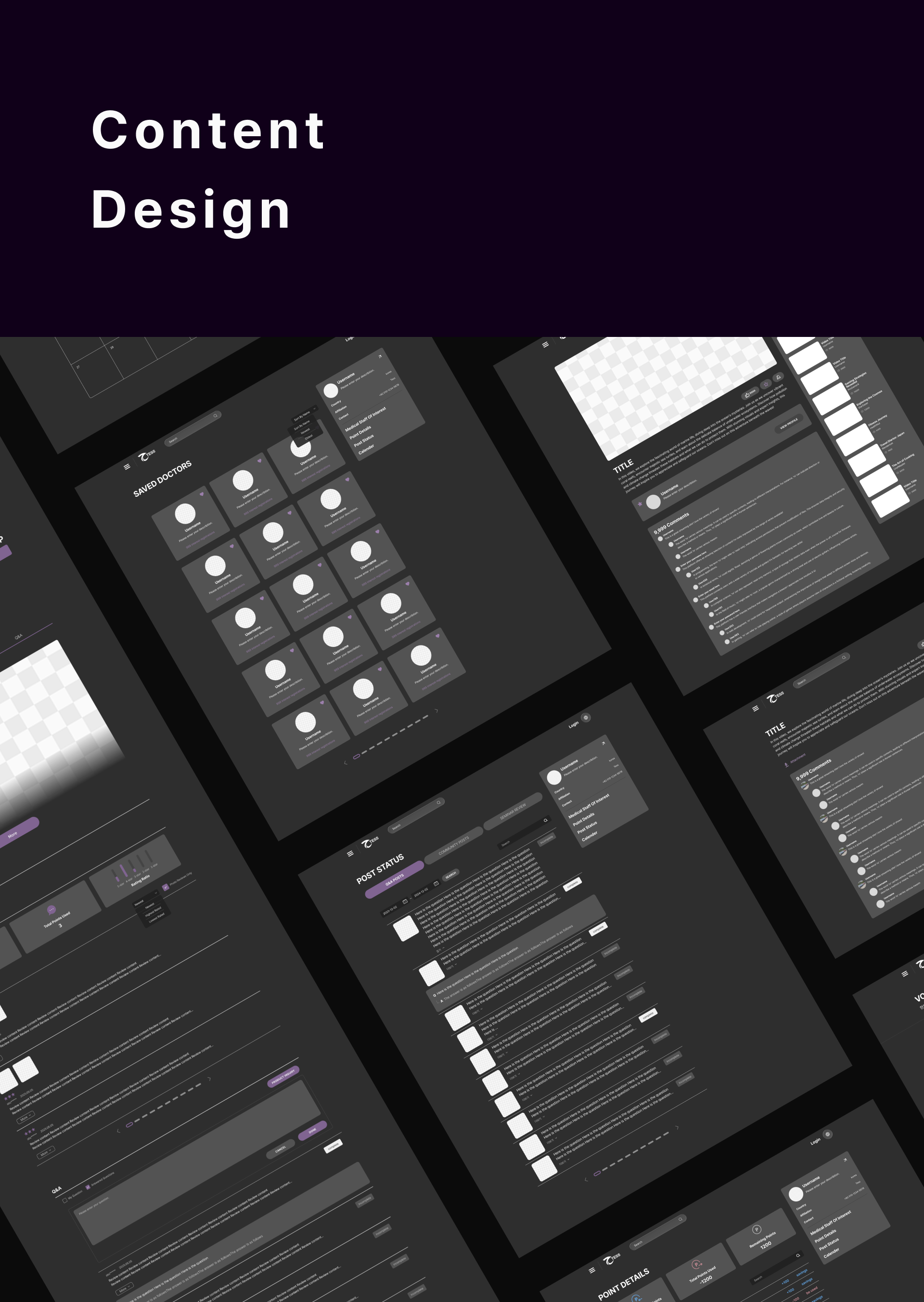 다크 UI와 보라 포인트 컬러를 활용해 안정적이고 집중력 있는 사용자 경험 제공.