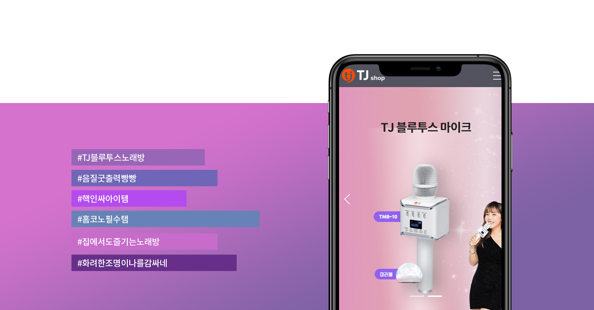 노래방기기 전문 회사에서 판매하는 고품질 블루투스 마이크를 주 상품으로 내세운