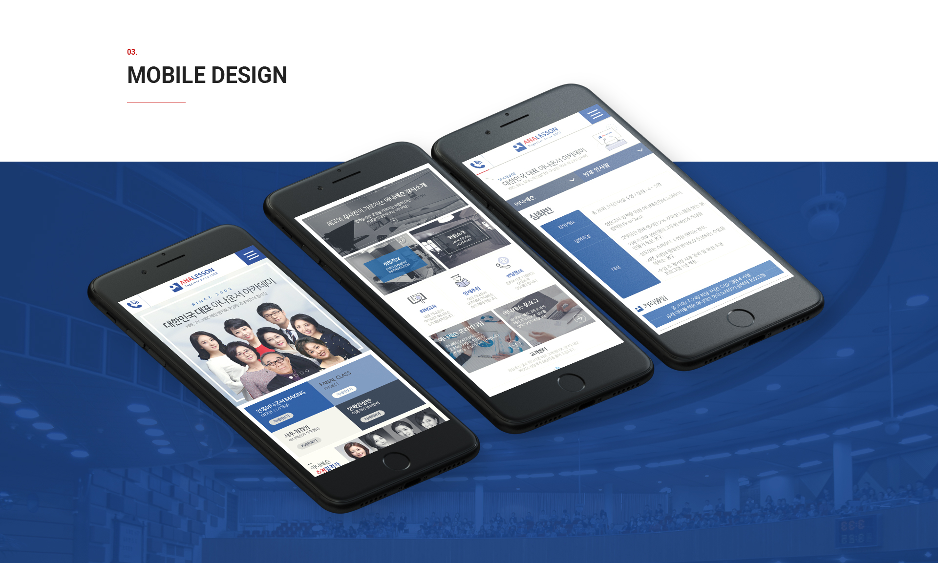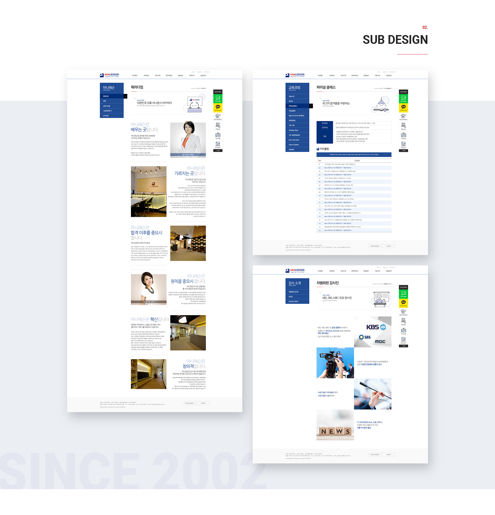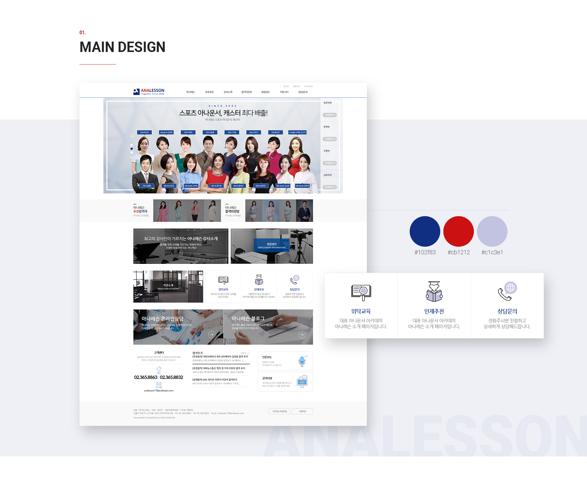 아나레슨 홈페이지의 메인 비주얼은 강사진과 커리큘럼을 소개하고 홈페이지 사용자의 최고 궁금증을 바로 알 수 있게 하며,