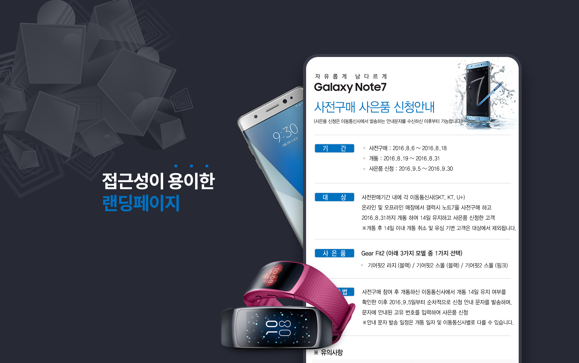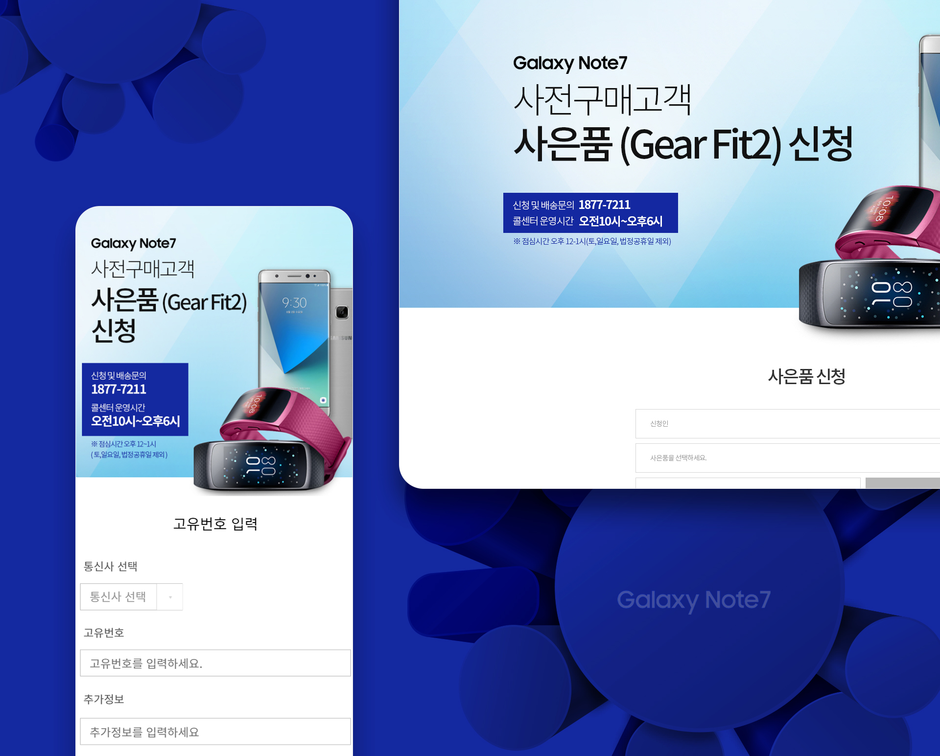 에스티엠넷 랜딩페이지는 삼성 갤러시 노트7 사전 구매고객 사은품 신청 랜딩페이지로,