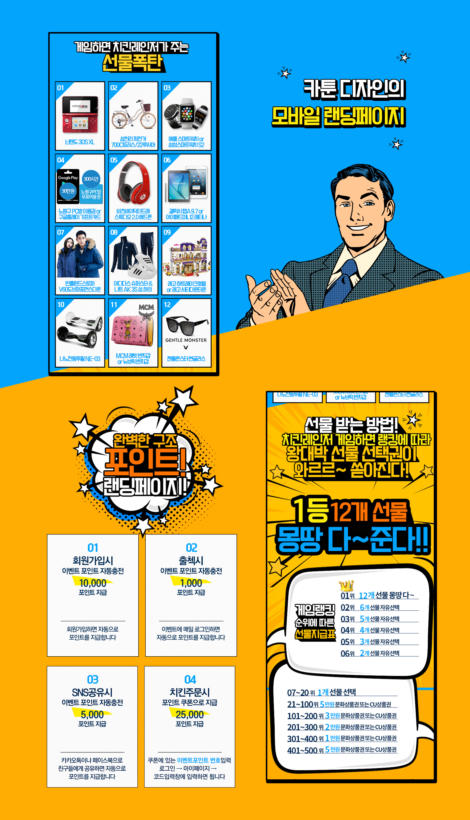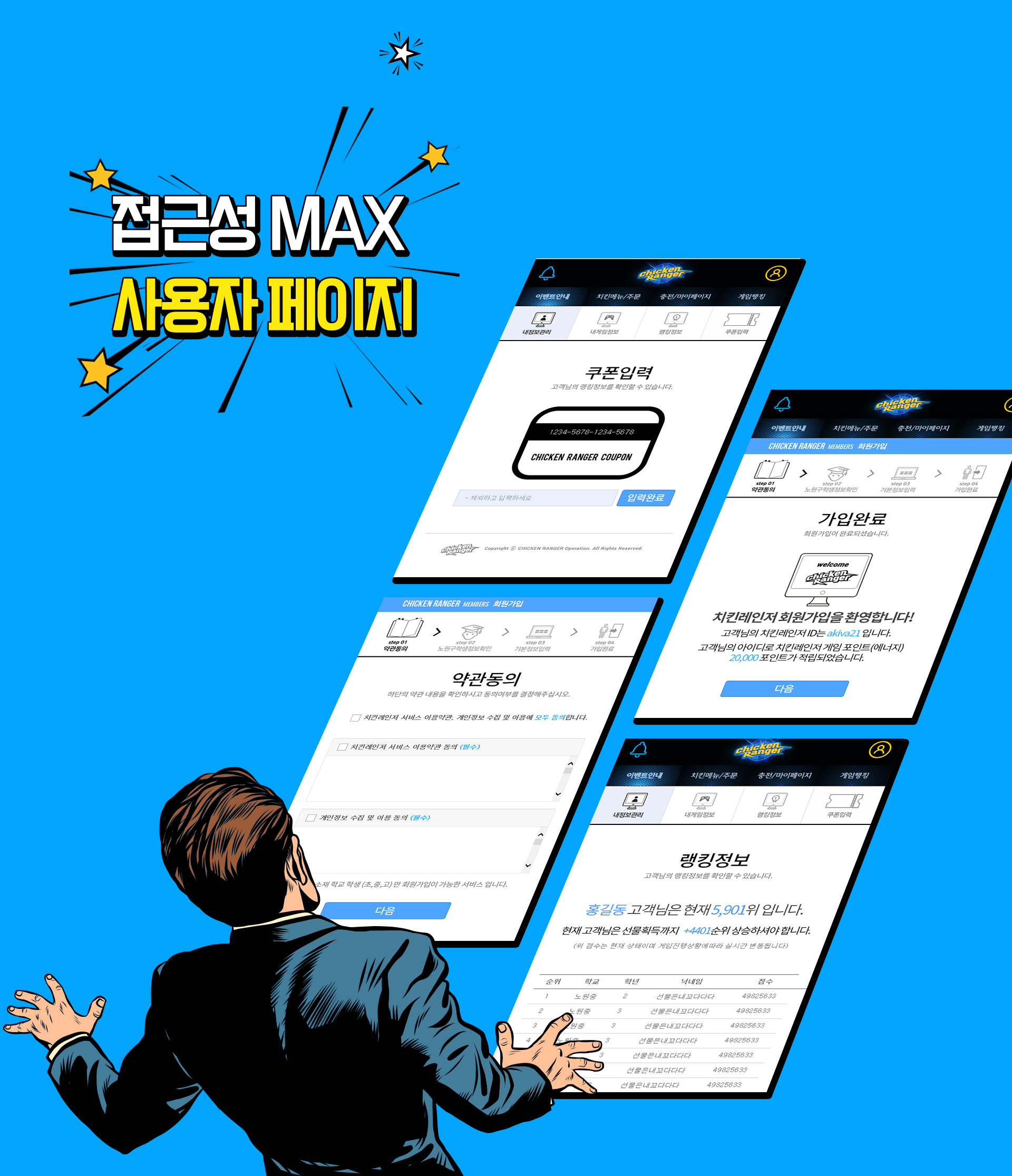 치킨레인저 랜딩페이지는 10대를 위한 이벤트 랜딩 페이지로서 연령층이 낮은 것을 고려하여