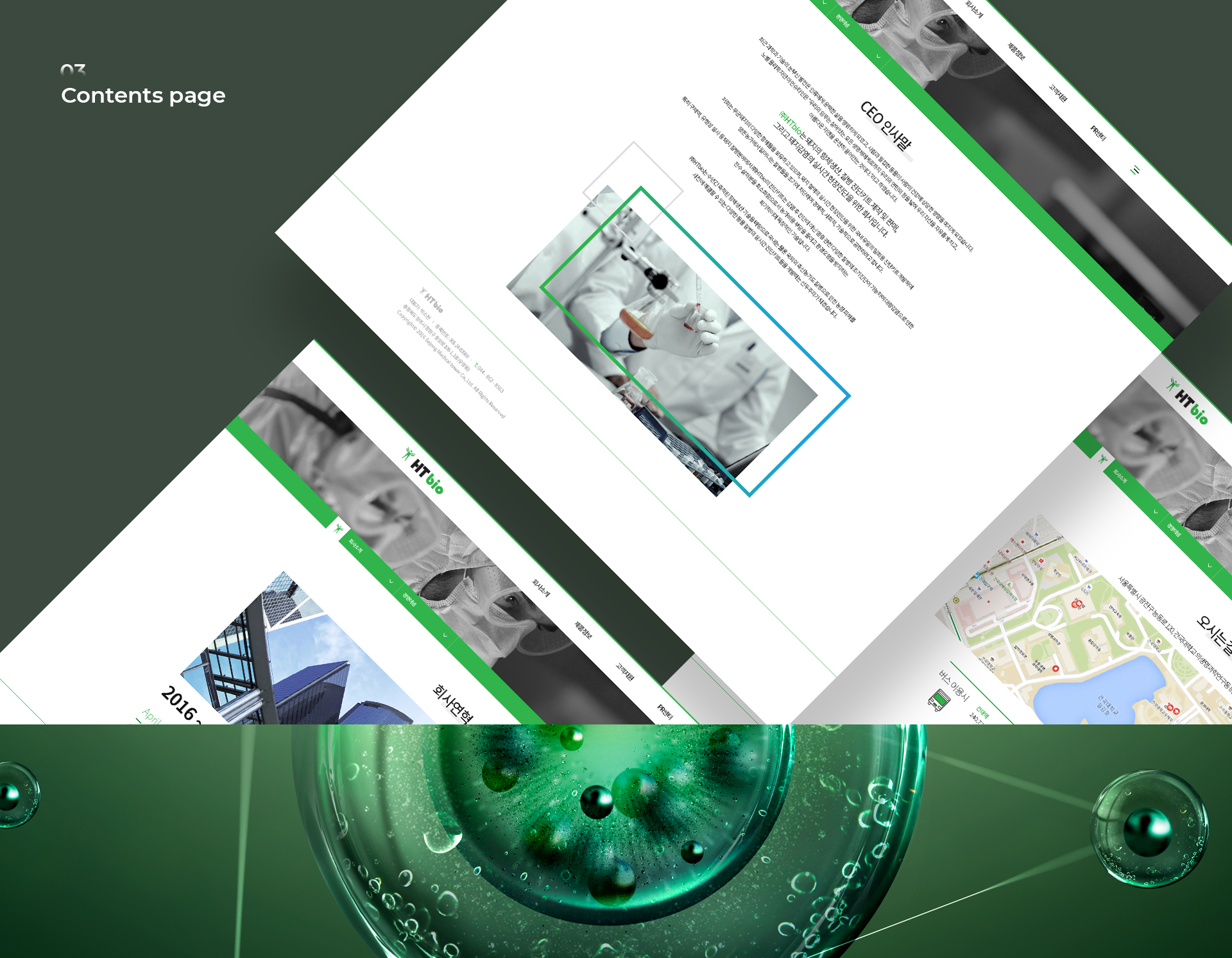 아름다운 자연을 온전히 끌어안는다 라는 마음으로 메인 컬러를 초록 계열로 선택하여