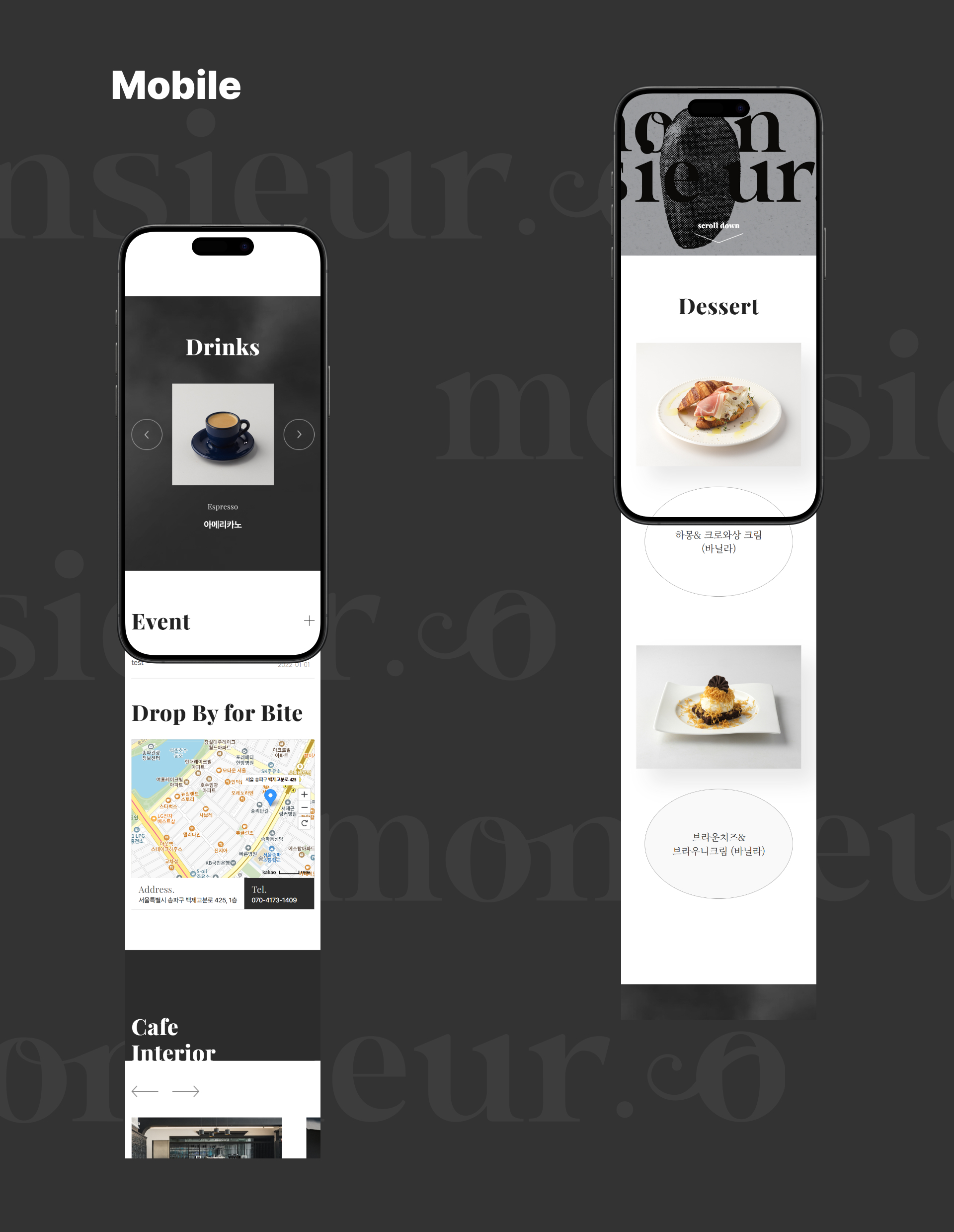 무슈오 카페의 컨셉 및 메뉴홍보를 위한 홈페이지