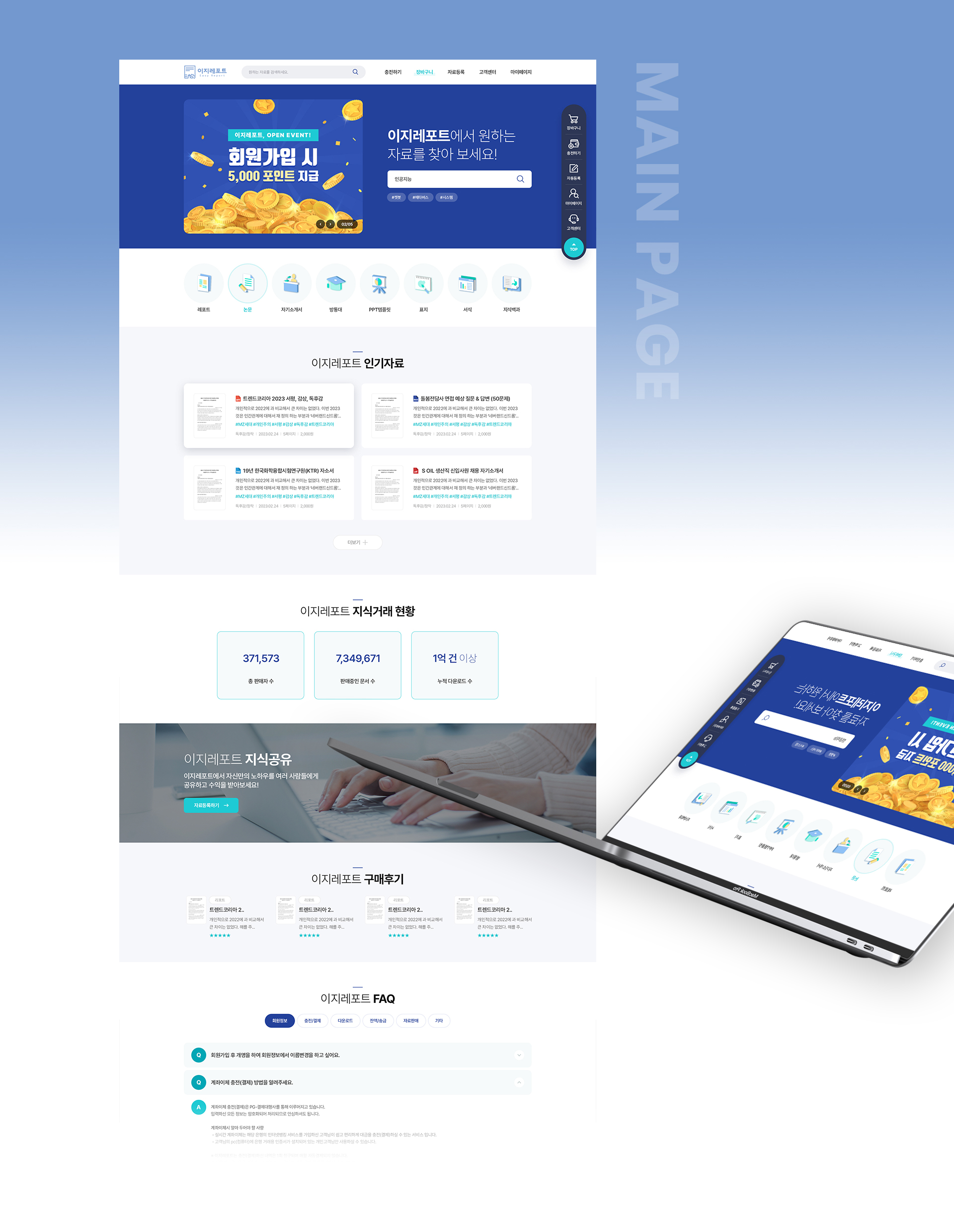 인기 레포트와 각 카테고리별 레포트를 한눈에 확인 할 수 있는