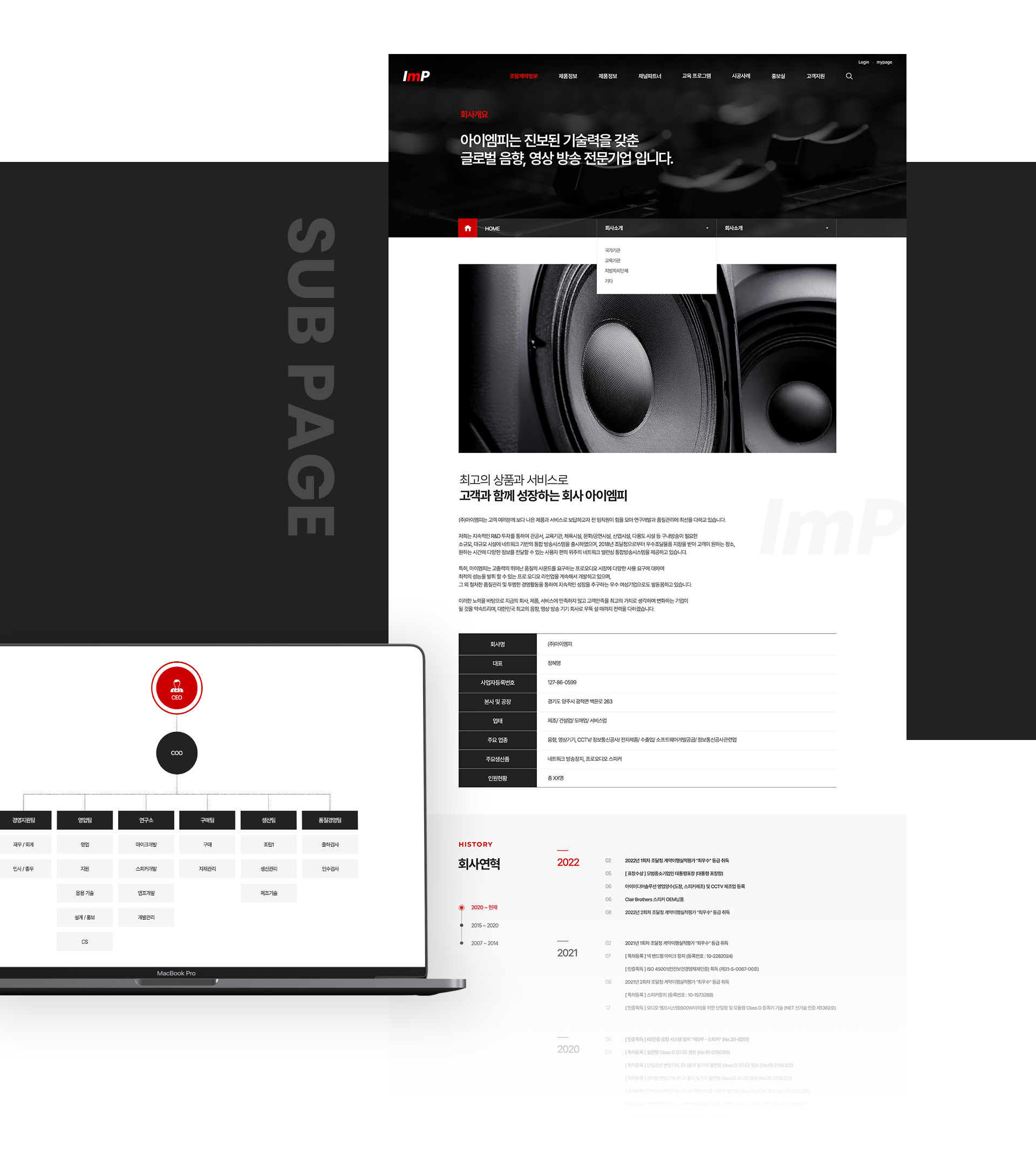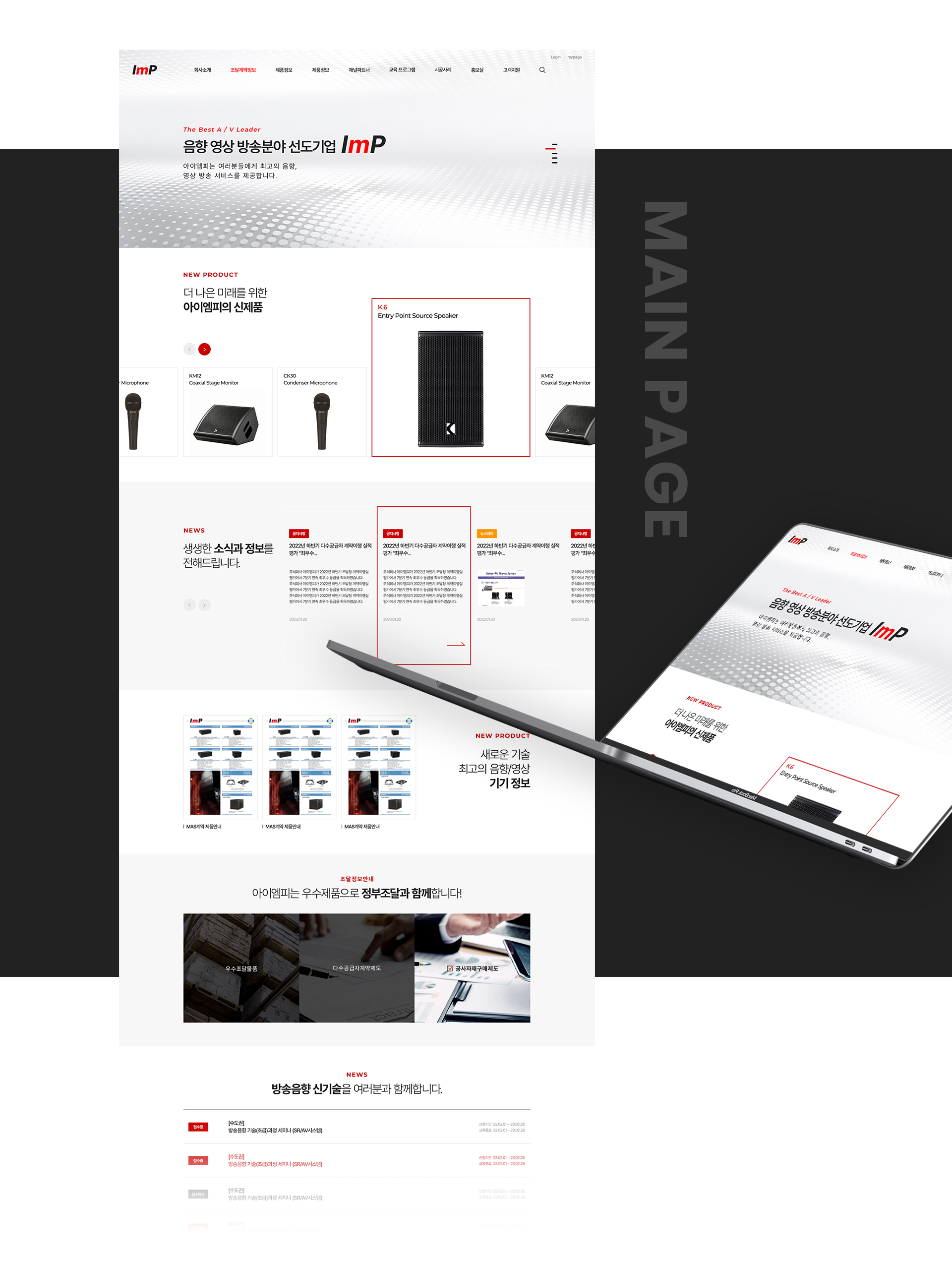 텍스트 중심의 레이아웃으로 구성된 사이트 이지만 회사에서 생산되는 제품을 부각시키는 이미지의 배치,