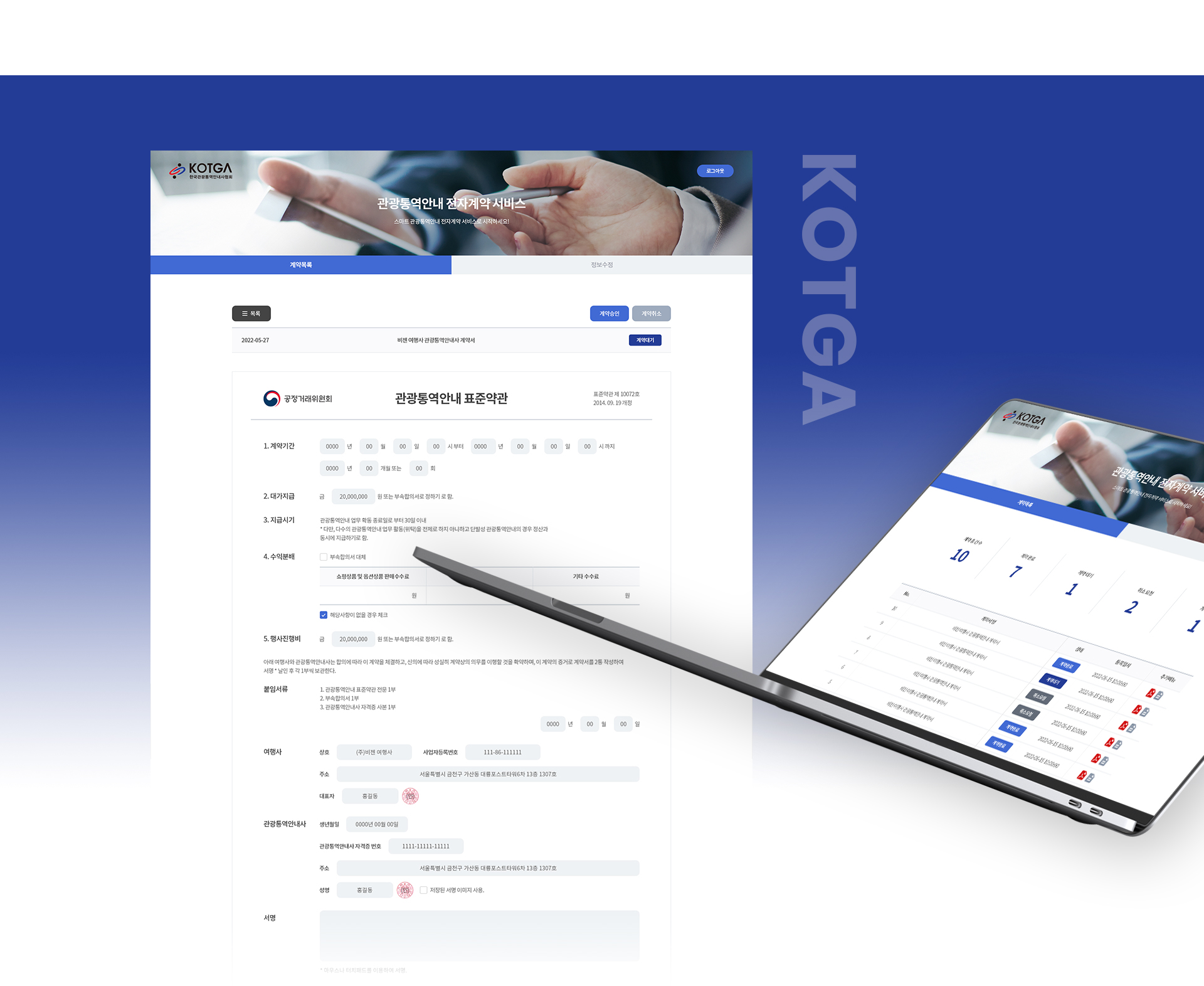 PC,MO 환경에 맞춘 계약 시스템, 터치를 통한 사인을 지원하며