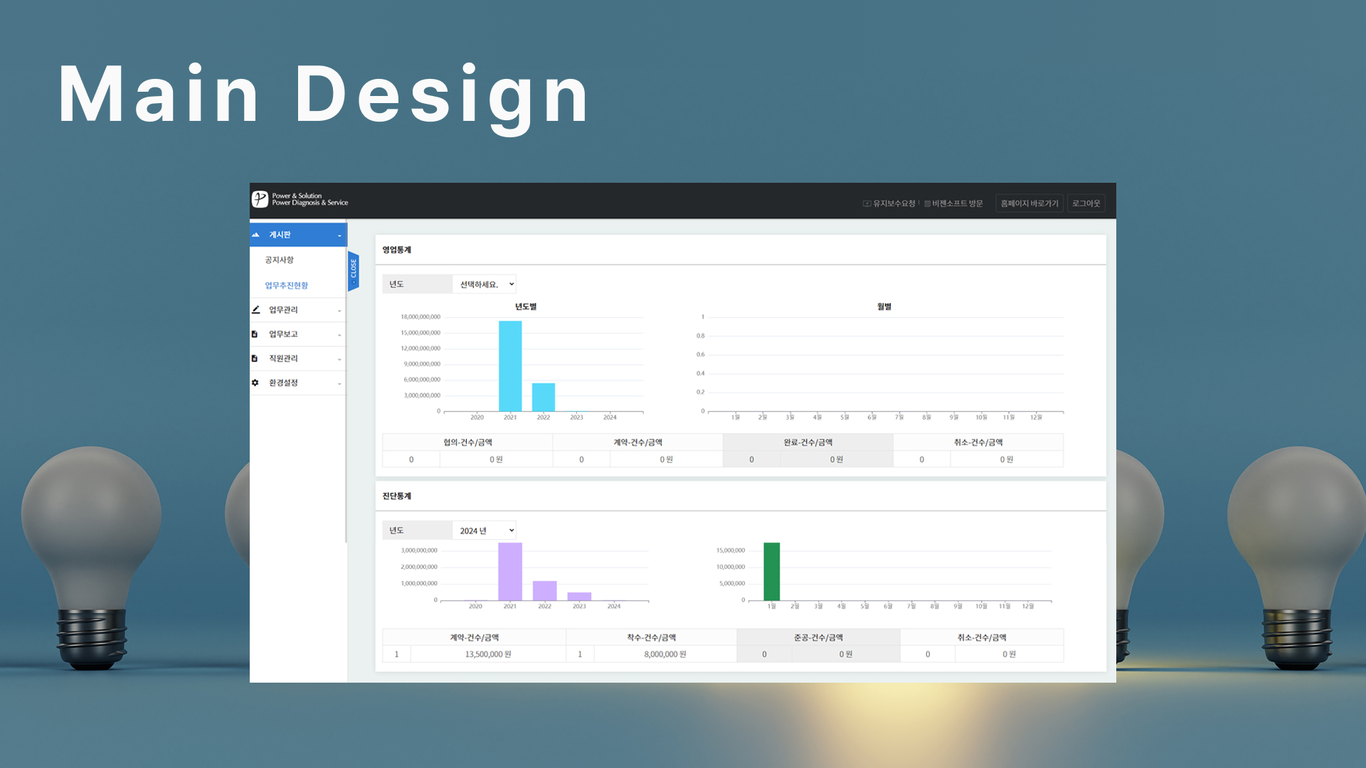 에너지/전력 분야의 데이터를 효율적으로 관리할 수 있도록 구성된 실무 중심 업무 시스템.