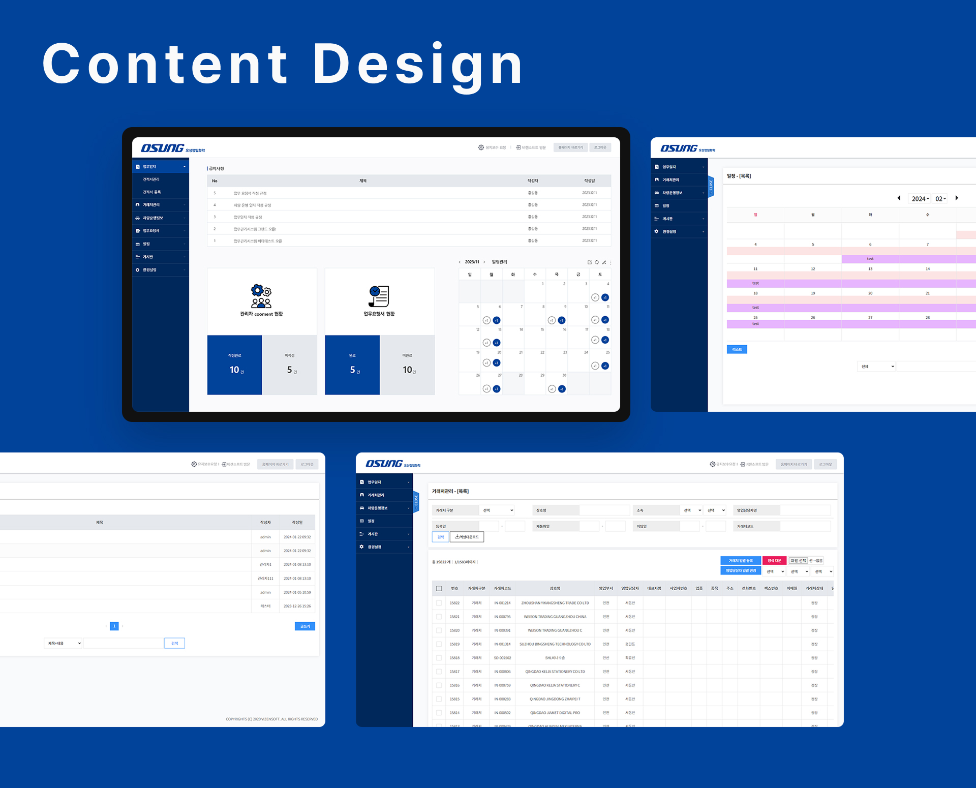 기업 아이덴티티에 맞춘 블루 컬러 기반의 UI와 깔끔한 레이아웃으로