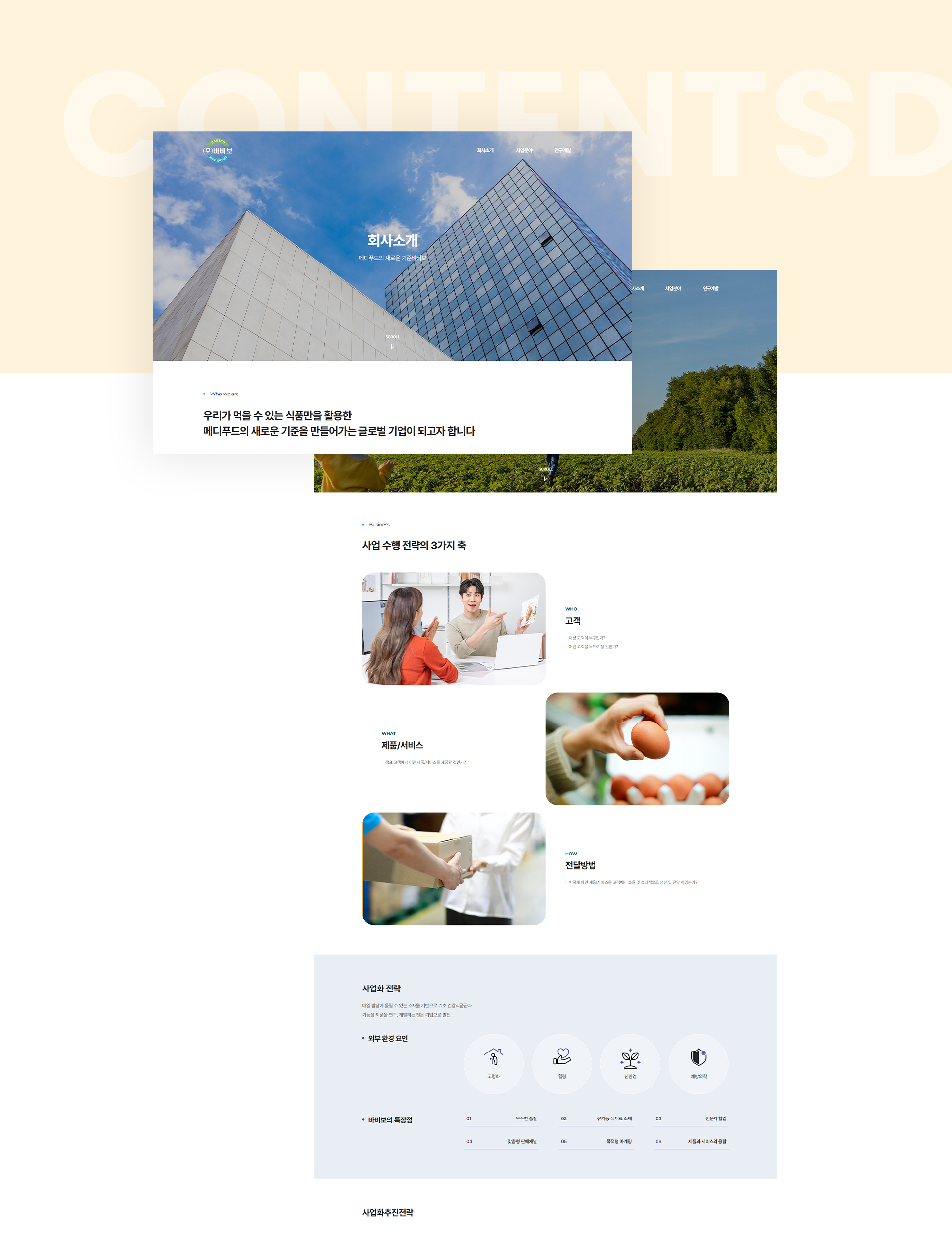 식품을 통한 건강한 삶을 만드는 기업으로, 인류의 건강과 행복한 삶에 기여하는