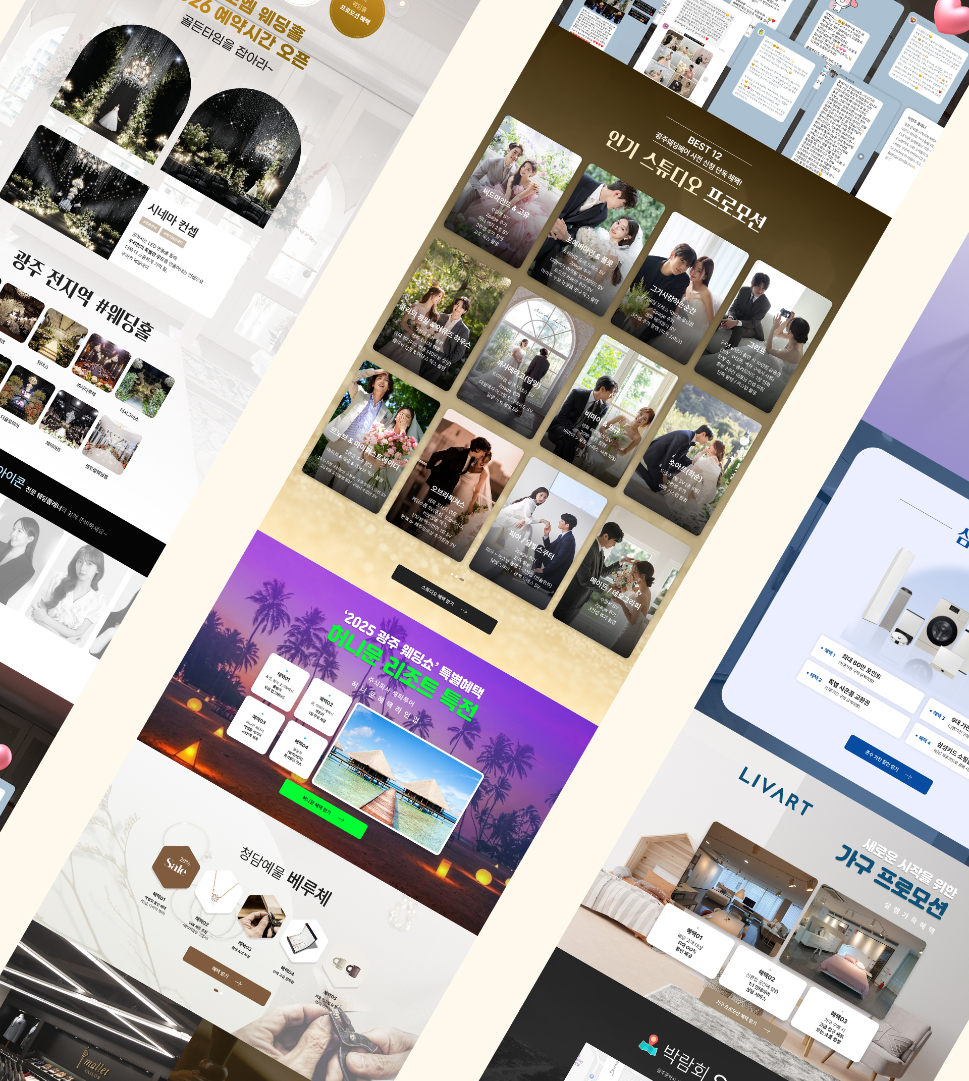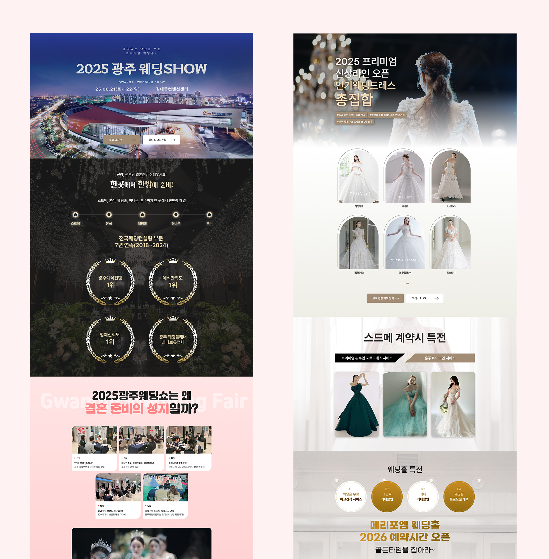 고급스러운 이미지와 조화로운 색상 배치로 프리미엄 웨딩의 품격을 강조하며, 사용자 친화적인 인터페이스를 제공합니다.