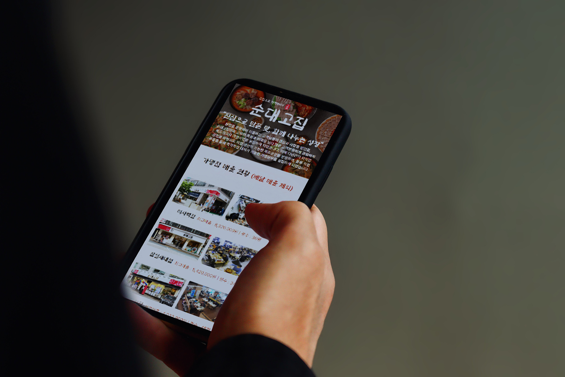 순대고집 랜딩페이지는 전통적인 한식 브랜드의 정체성과 가맹점 창업